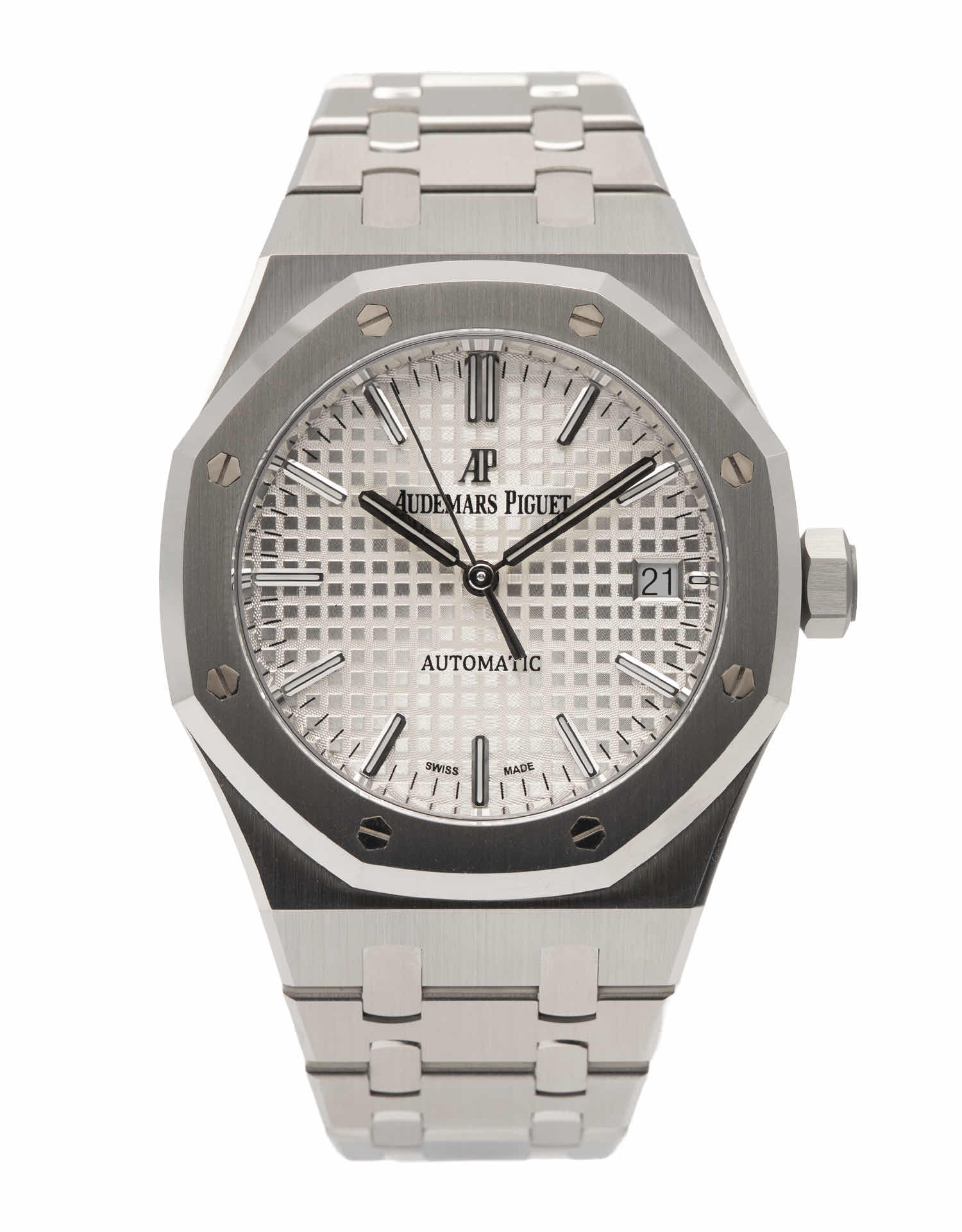 Discover the Audemars Piguet Royal Oak (2019), where innovation meets timeless style. Crafted in stainless steel, its white dial adds flair and functionality. With a 37mm case, it effortlessly balances modern design and classic charm.