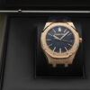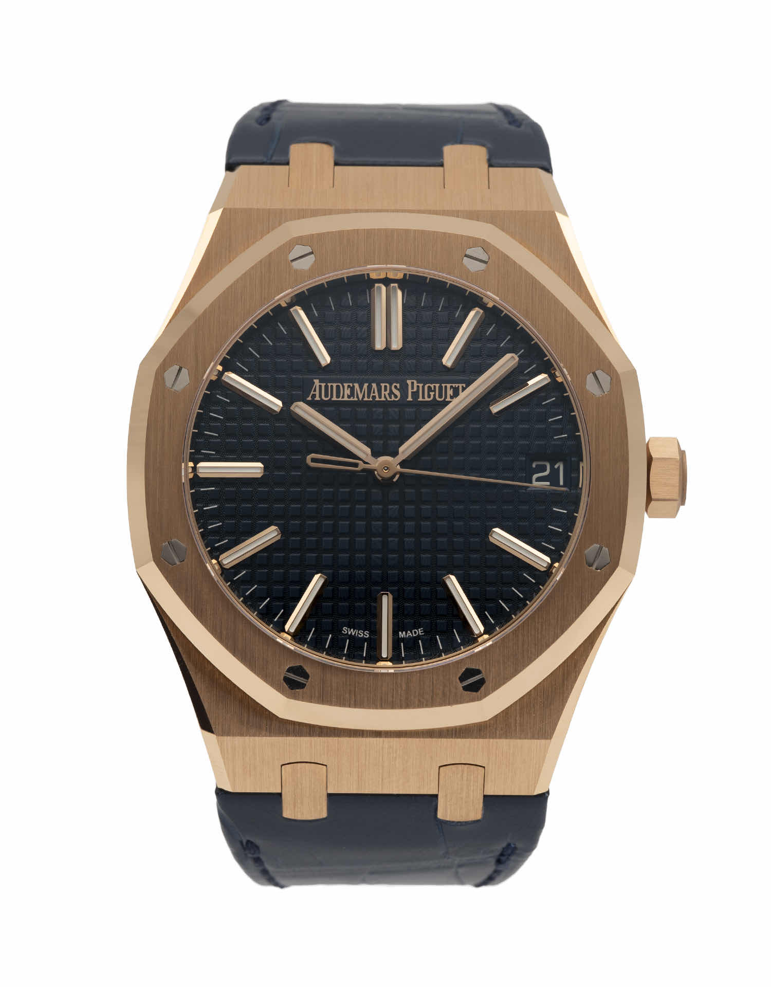 Discover the Audemars Piguet Royal Oak (2023), where innovation meets timeless style. Crafted in rose gold, its blue dial adds flair and functionality. With a 41Mm case, it effortlessly balances modern design and classic charm.