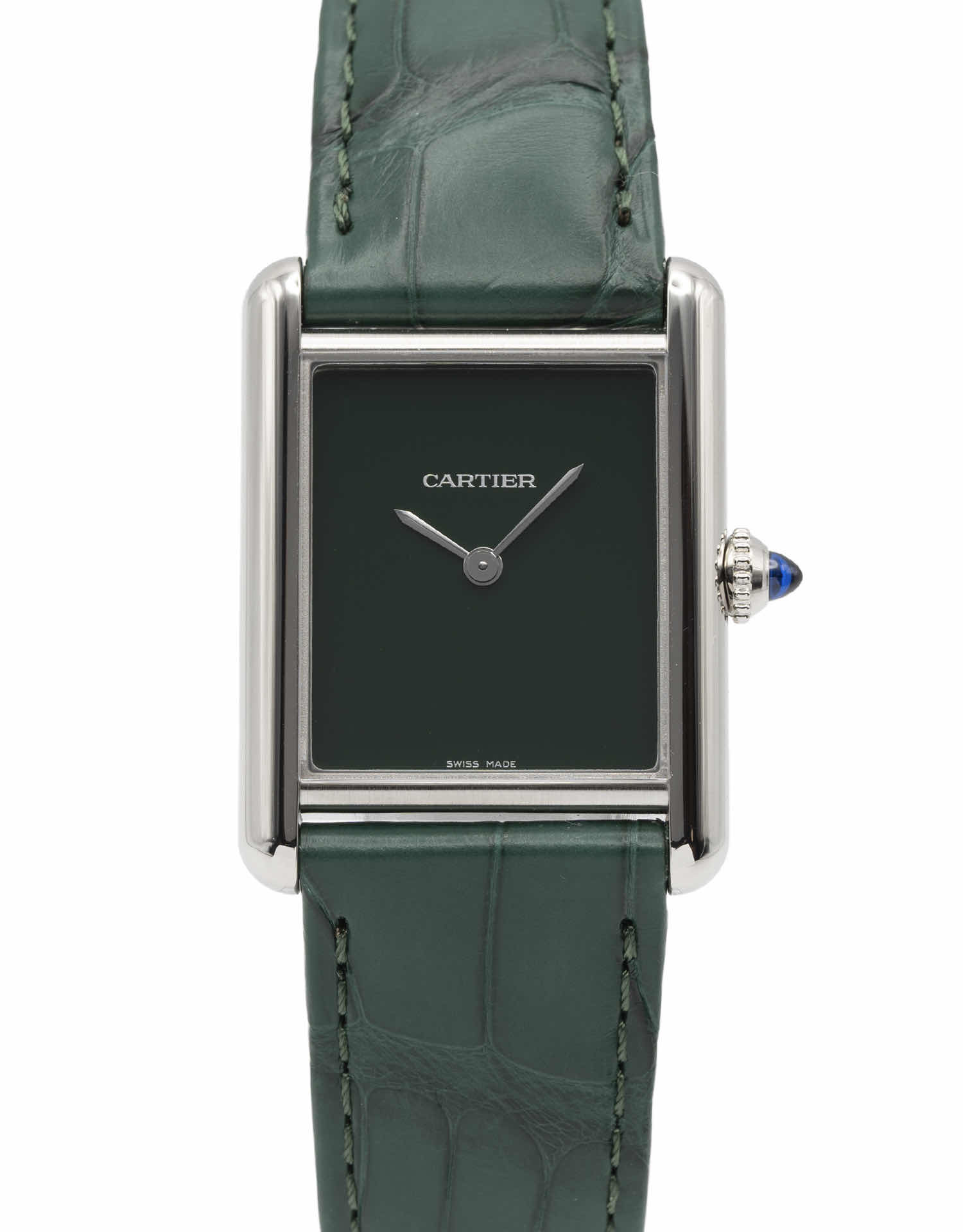 Discover the Cartier Tank (2021), where innovation meets timeless style. Crafted in stainless steel, its green dial adds flair and functionality. With a 33.7mm case, it effortlessly balances modern design and classic charm.