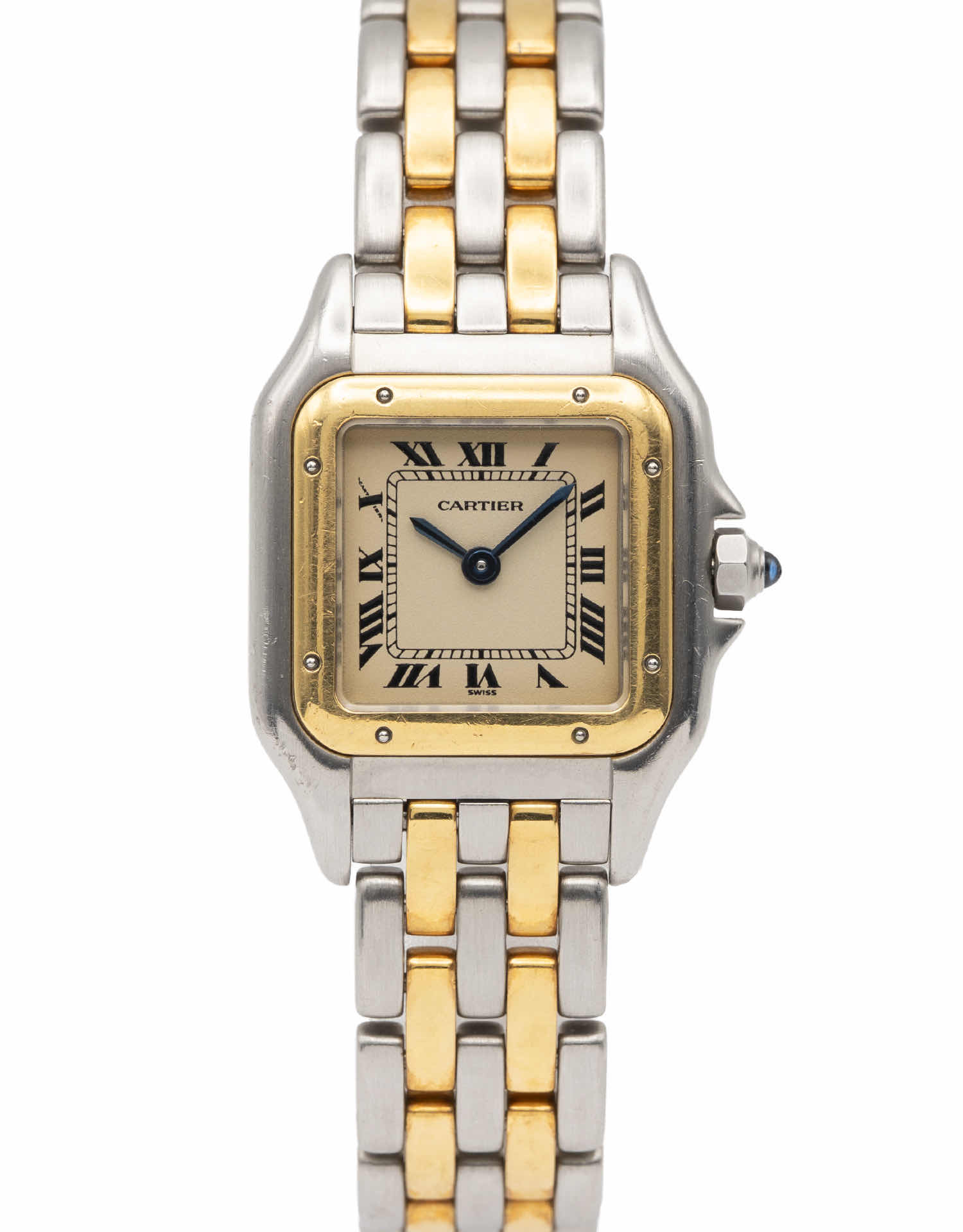 Discover the Cartier Panthere (1990), where innovation meets timeless style. Crafted in two tone yellow gold, its ivory dial adds flair and functionality. With a 22mm case, it effortlessly balances modern design and classic charm.