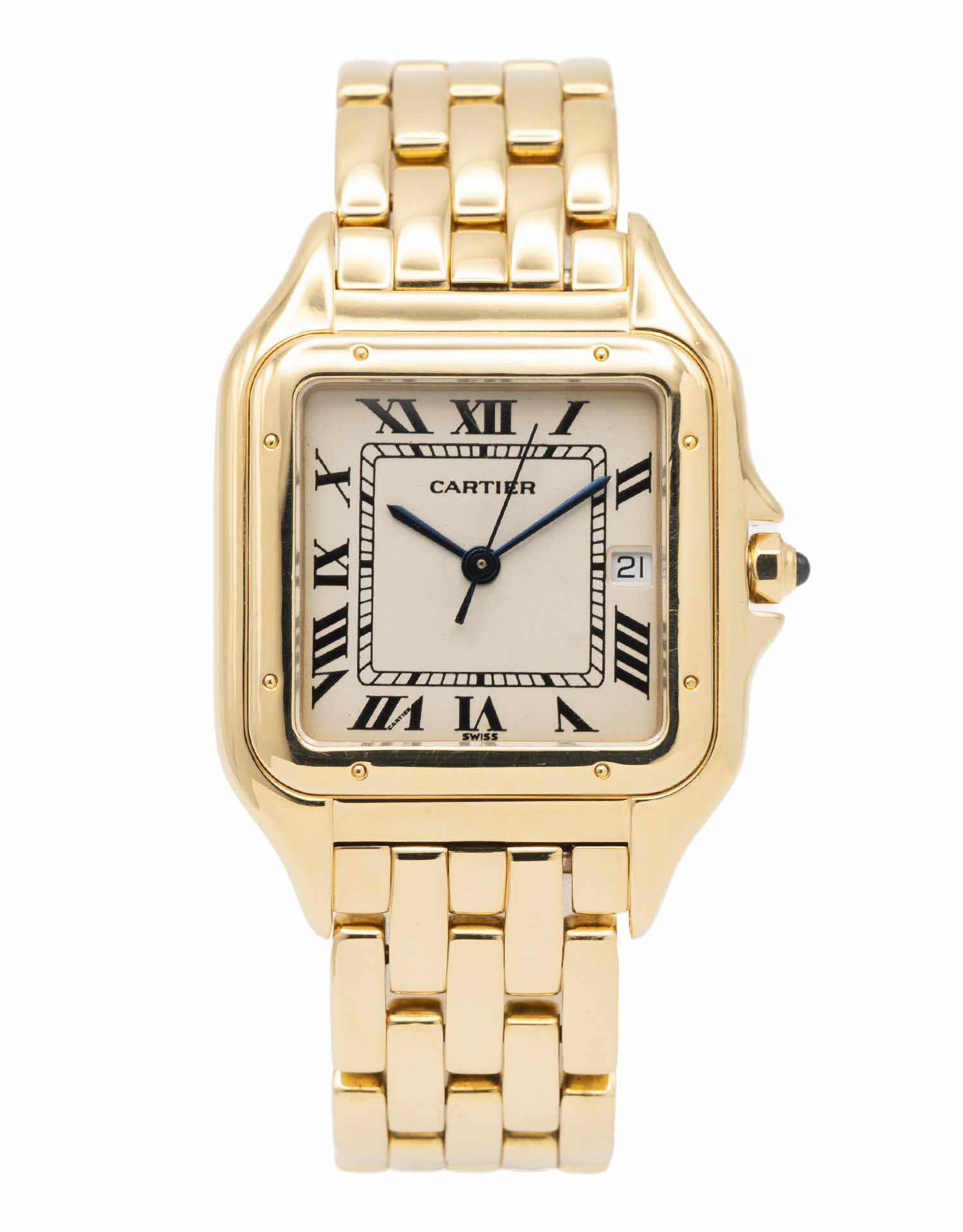Discover the Cartier Panthere, where innovation meets timeless style. Crafted in yellow gold, its white dial adds flair and functionality. With a 28mm case, it effortlessly balances modern design and classic charm.