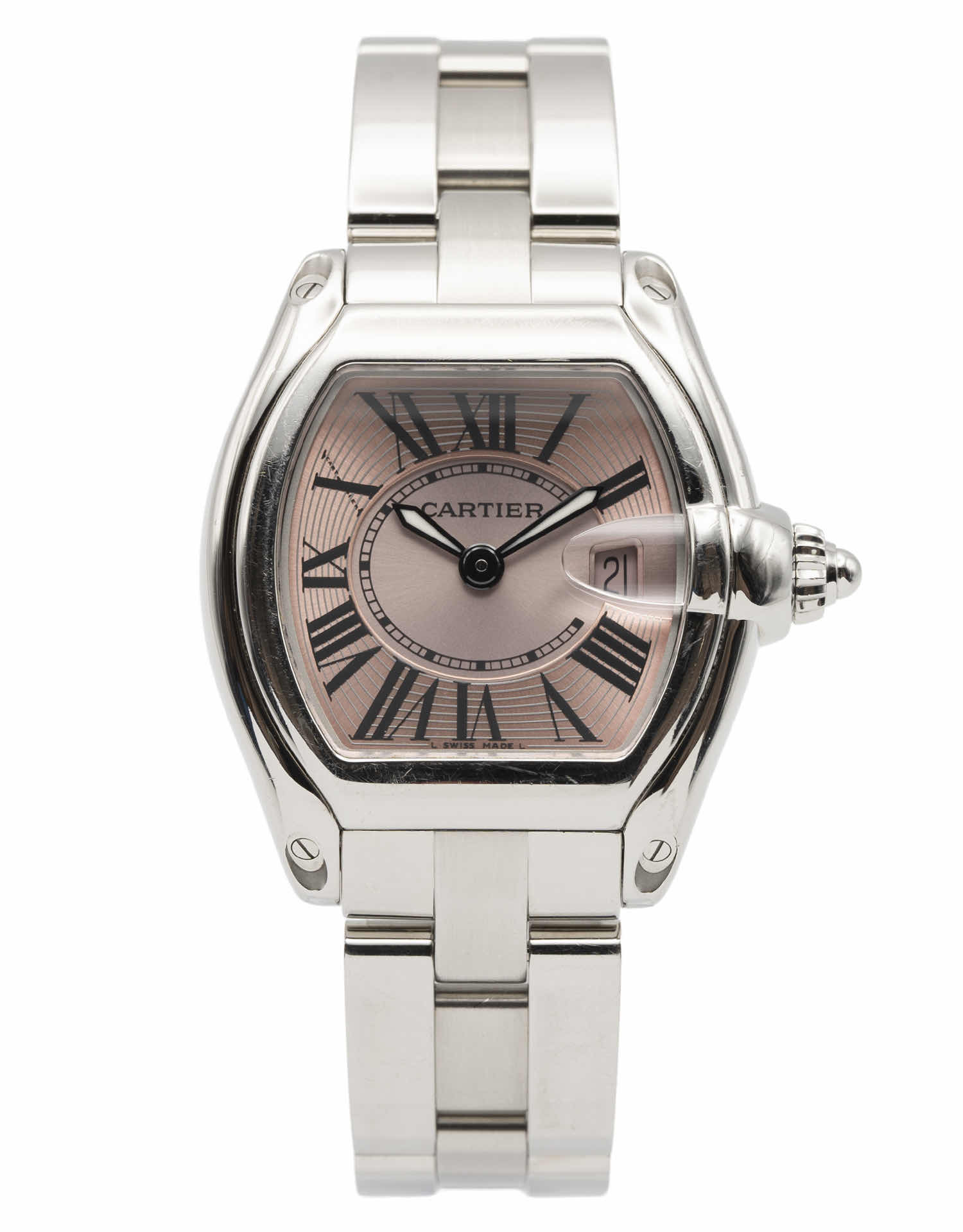 Discover the Cartier Roadster (2006), where innovation meets timeless style. Crafted in stainless steel, its pink dial adds flair and functionality. With a 31mm case, it effortlessly balances modern design and classic charm.