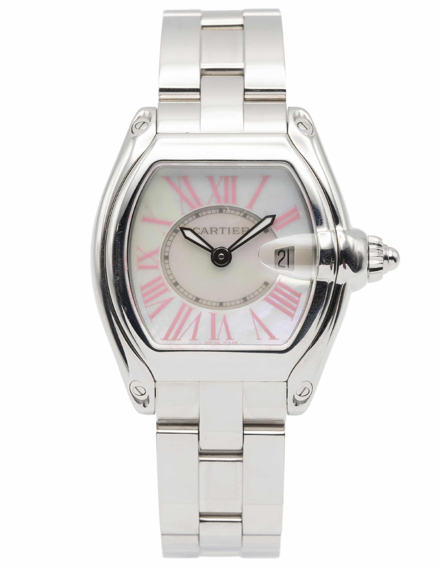 Discover the Cartier Roadster (2008), where innovation meets timeless style. Crafted in stainless steel, its white pearl dial adds flair and functionality. With a 33mm case, it effortlessly balances modern design and classic charm.