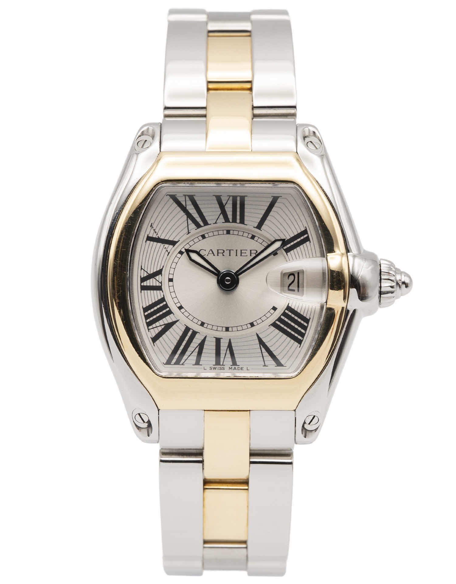 Discover the Cartier Roadster, where innovation meets timeless style. Crafted in two tone yellow gold, its white dial adds flair and functionality. With a 30MM case, it effortlessly balances modern design and classic charm.
