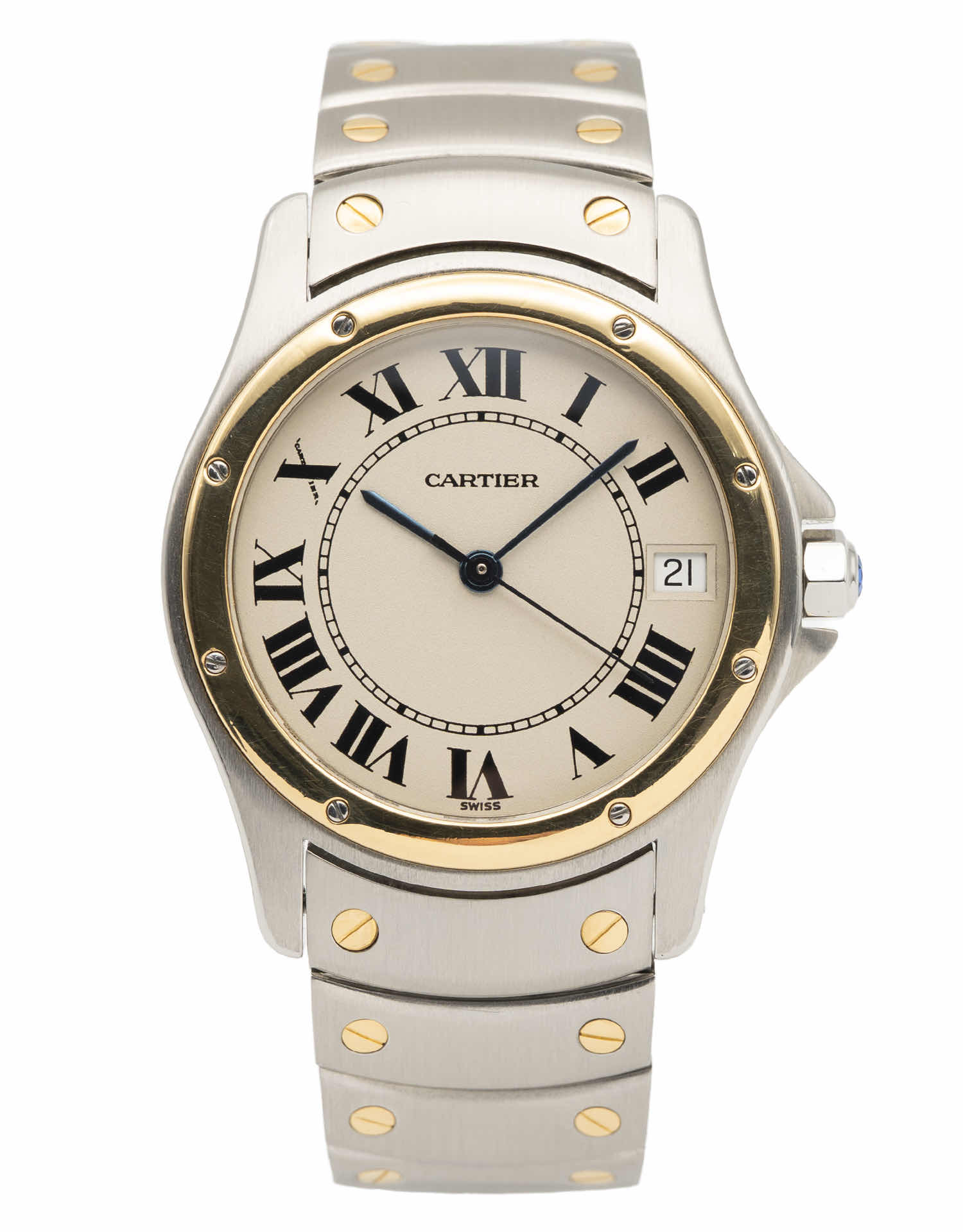 Discover the Cartier Ronde de Cartier (2004), where innovation meets timeless style. Crafted in two tone yellow gold, its ivory dial adds flair and functionality. With a perfectly sized case, it effortlessly balances modern design and classic charm.
