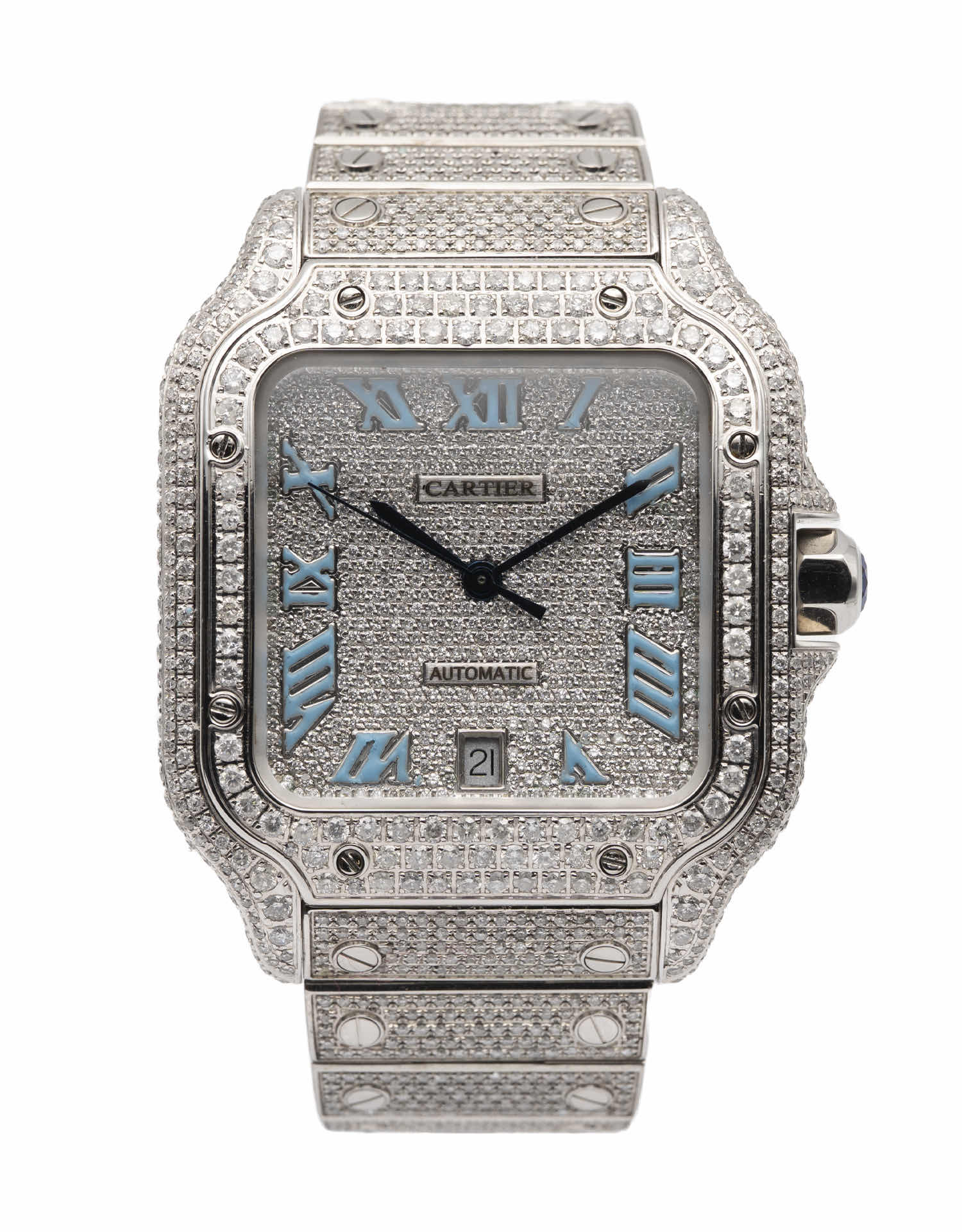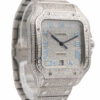 Discover the Cartier Santos, where innovation meets timeless style. Crafted in stainless steel, its pave diamond dial adds flair and functionality. With a 40MM case, it effortlessly balances modern design and classic charm.