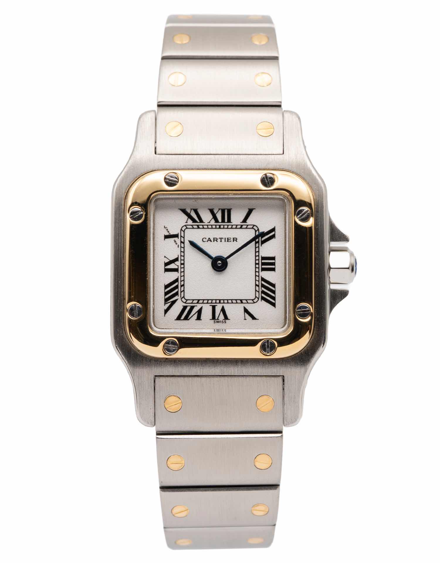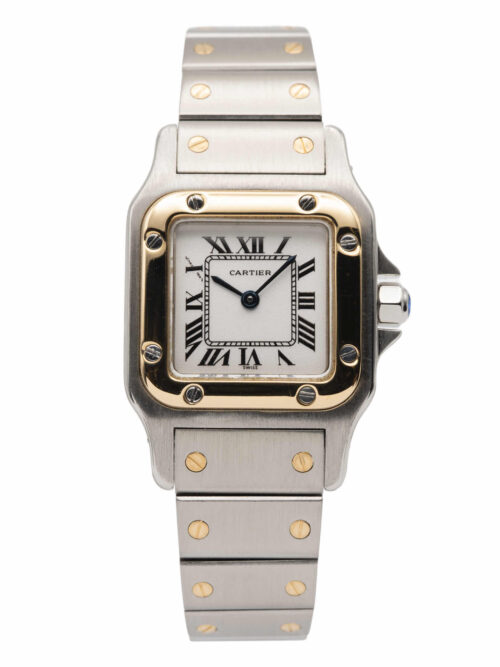 Discover the Cartier Santos, where innovation meets timeless style. Crafted in two tone yellow gold, its white dial adds flair and functionality. With a 24mm case, it effortlessly balances modern design and classic charm.