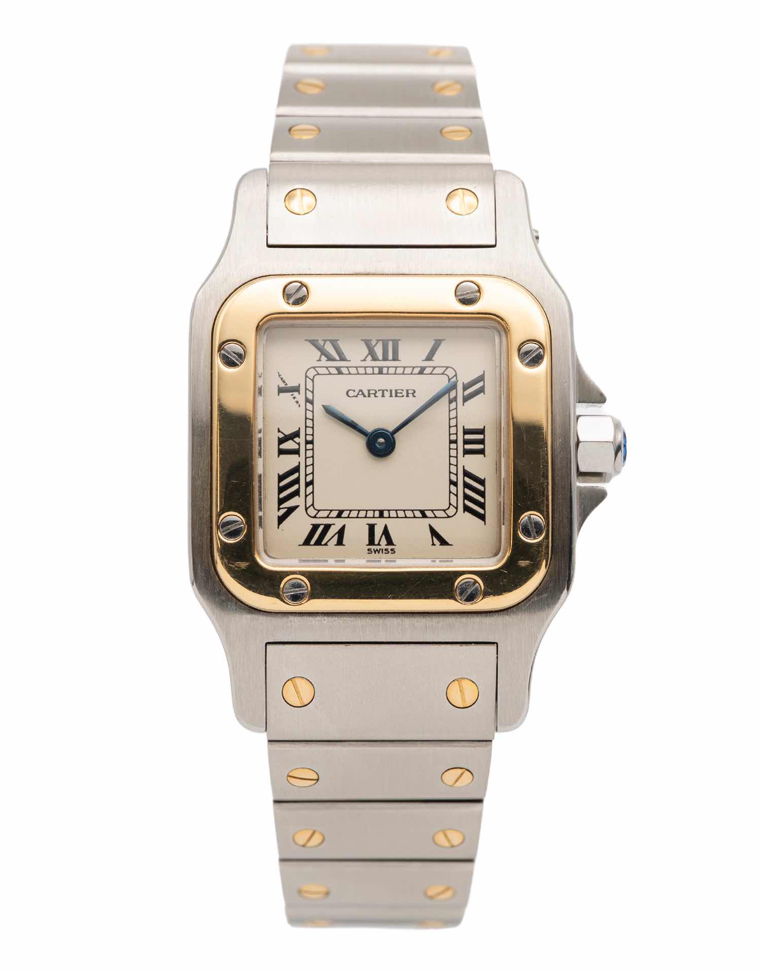 Discover the Cartier Santos (1990), where innovation meets timeless style. Crafted in two tone yellow gold, its ivory dial adds flair and functionality. With a 24Mm case, it effortlessly balances modern design and classic charm.