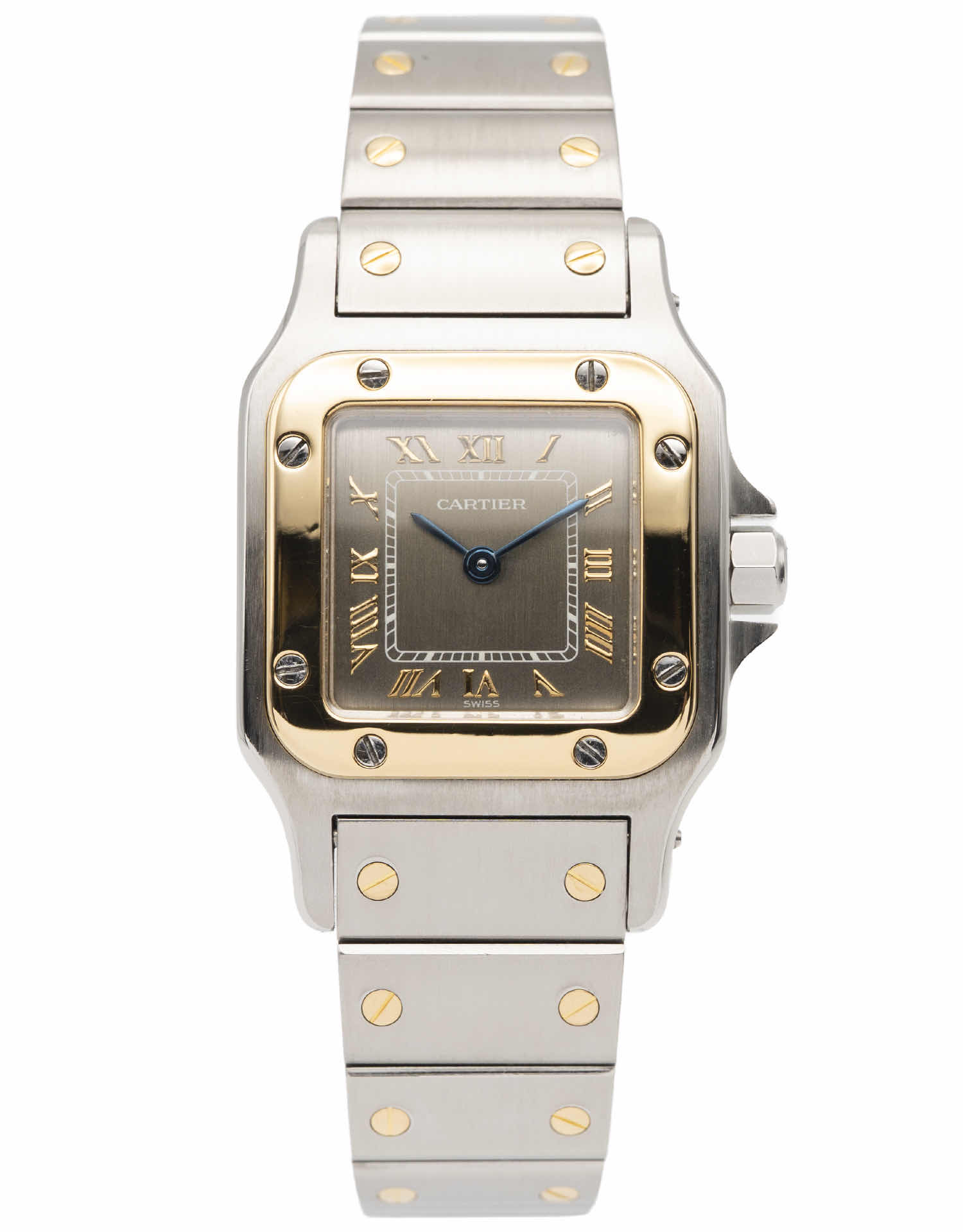 Discover the Cartier Santos (1999), where innovation meets timeless style. Crafted in two tone yellow gold, its dark grey dial adds flair and functionality. With a 24Mm case, it effortlessly balances modern design and classic charm.