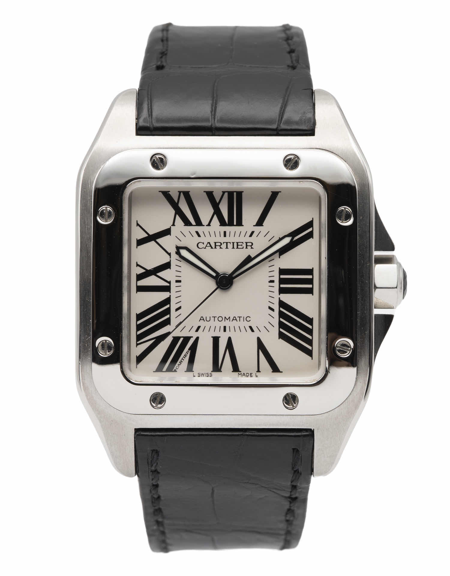 Discover the Cartier Santos, where innovation meets timeless style. Crafted in stainless steel, its white dial adds flair and functionality. With a 41Mm case, it effortlessly balances modern design and classic charm.