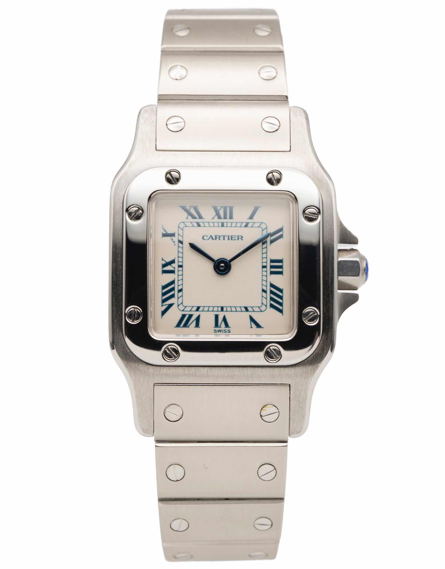 Discover the Cartier Santos, where innovation meets timeless style. Crafted in stainless steel, its ivory dial adds flair and functionality. With a 24mm case, it effortlessly balances modern design and classic charm.