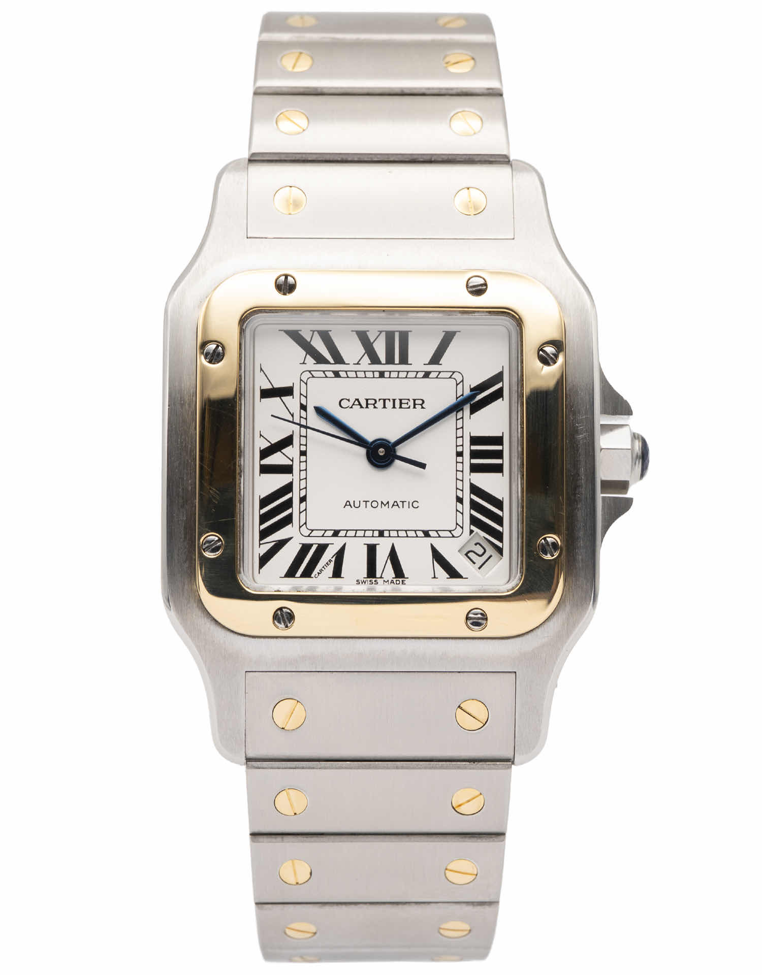 Discover the Cartier Santos (2012), where innovation meets timeless style. Crafted in two tone yellow gold, its white dial adds flair and functionality. With a 32mm case, it effortlessly balances modern design and classic charm.
