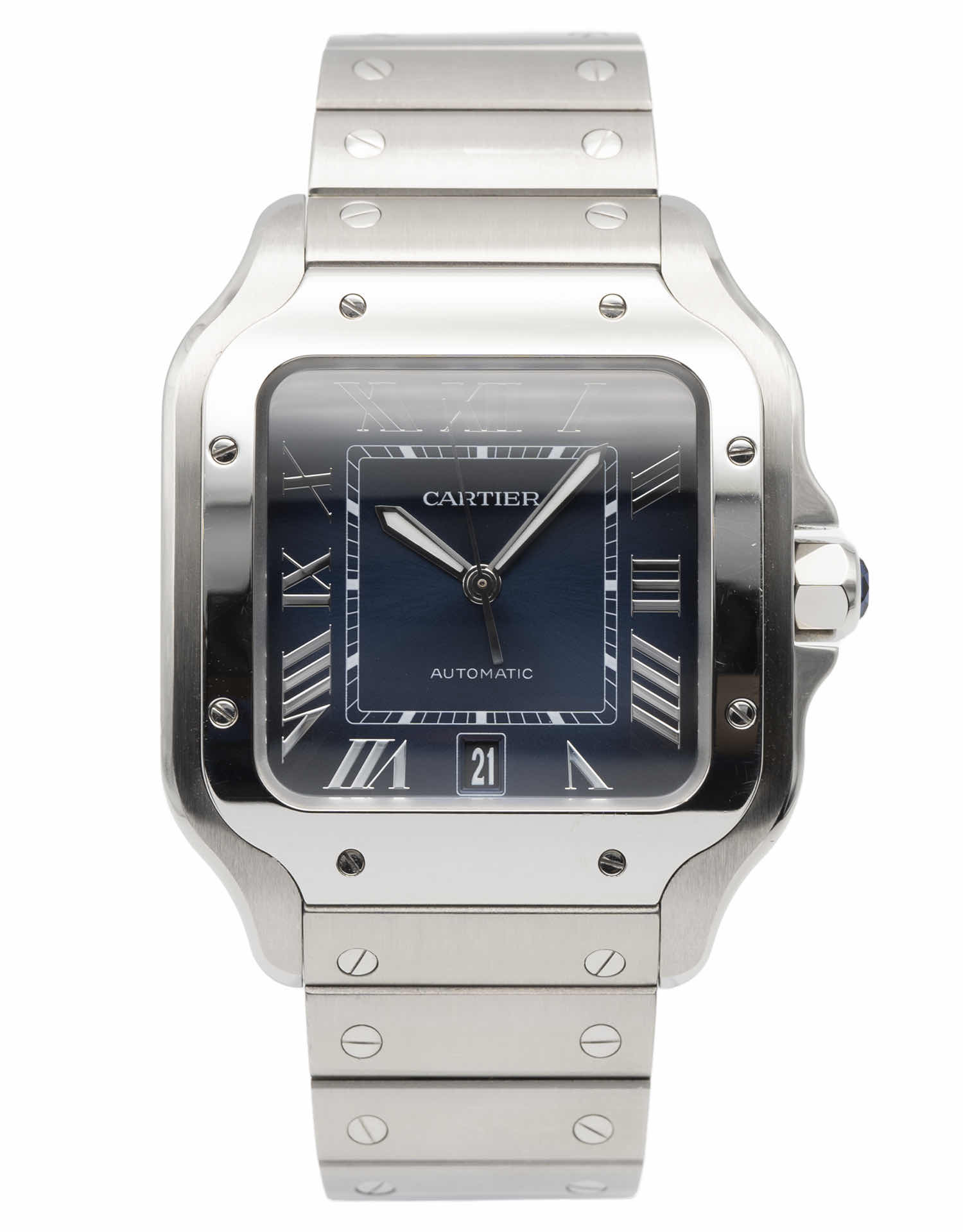 Discover the Cartier Santos (2022), where innovation meets timeless style. Crafted in stainless steel, its blue dial adds flair and functionality. With a 40MM case, it effortlessly balances modern design and classic charm.