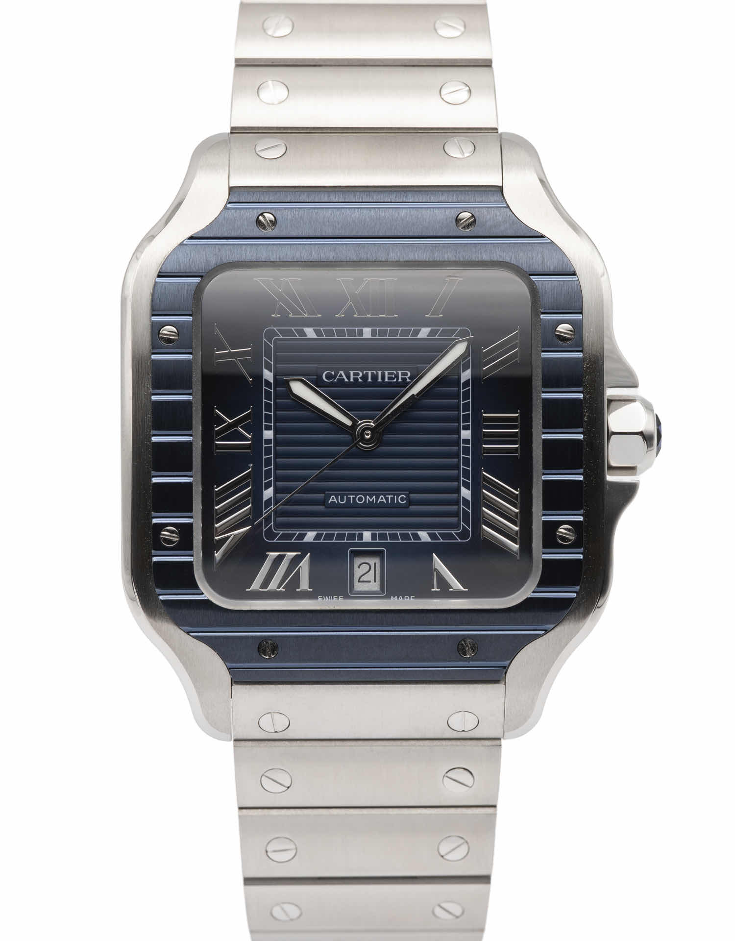 Discover the Cartier Santos (2023), where innovation meets timeless style. Crafted in stainless steel, its blue dial adds flair and functionality. With a 40MM case, it effortlessly balances modern design and classic charm.