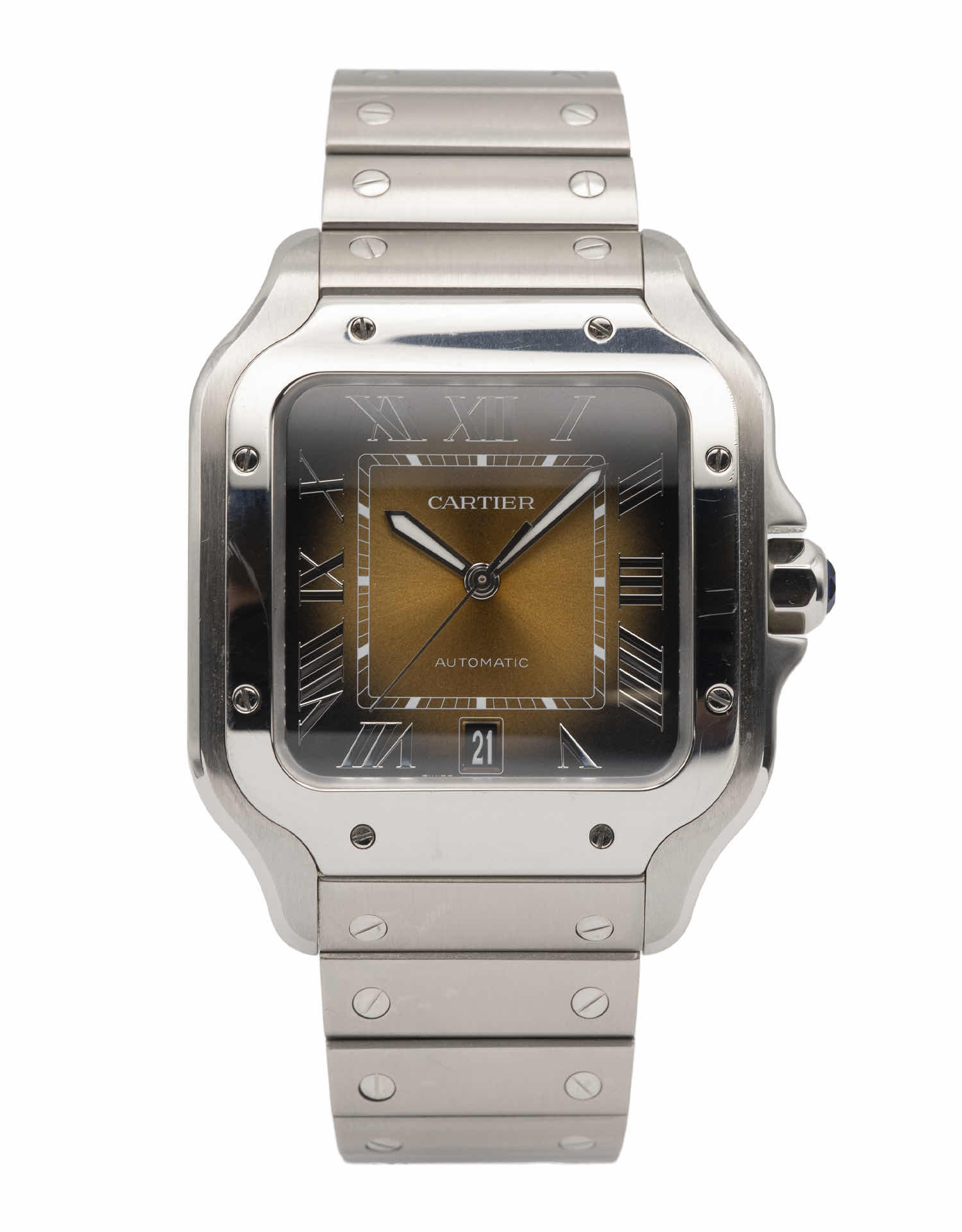 Discover the Cartier Santos (2024), where innovation meets timeless style. Crafted in stainless steel, its brown dial adds flair and functionality. With a 39.8MM case, it effortlessly balances modern design and classic charm.