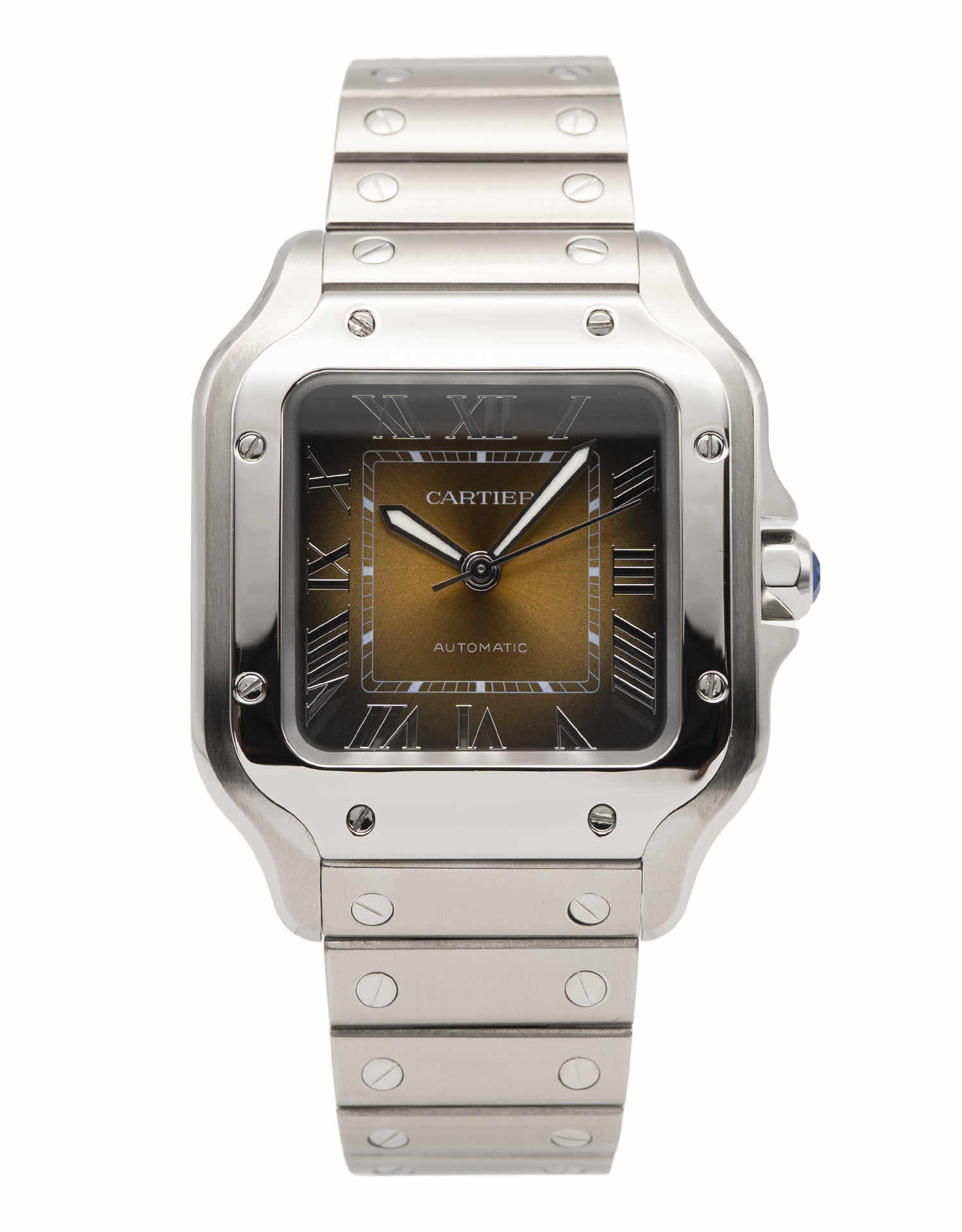 Discover the Cartier Santos (2024), where innovation meets timeless style. Crafted in stainless steel, its brown dial adds flair and functionality. With a 35mm case, it effortlessly balances modern design and classic charm.