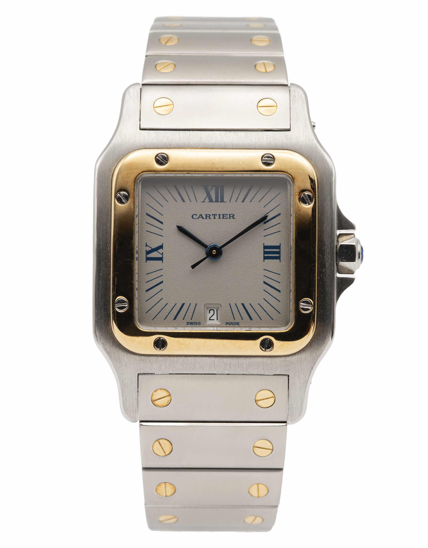 Discover the Cartier Santos, where innovation meets timeless style. Crafted in two tone yellow gold, its grey dial adds flair and functionality. With a perfectly sized case, it effortlessly balances modern design and classic charm.