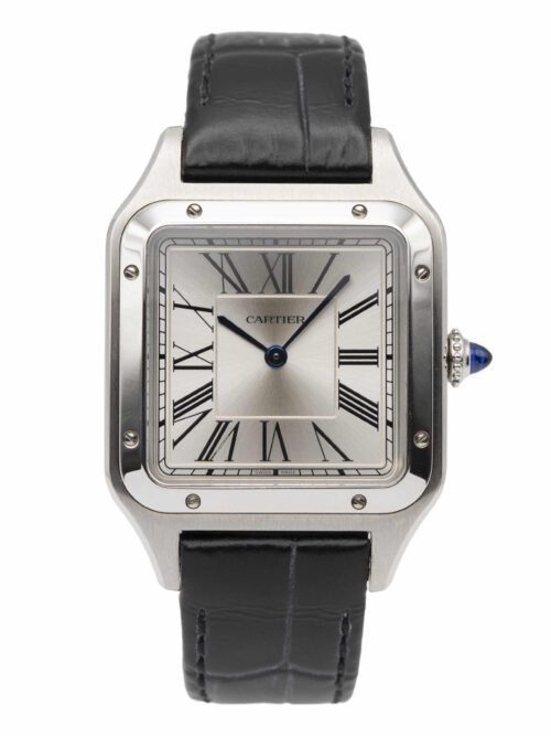 Discover the Cartier Santos Dumont, where innovation meets timeless style. Crafted in rose gold, its silver dial adds flair and functionality. With a 27.5mm case, it effortlessly balances modern design and classic charm.