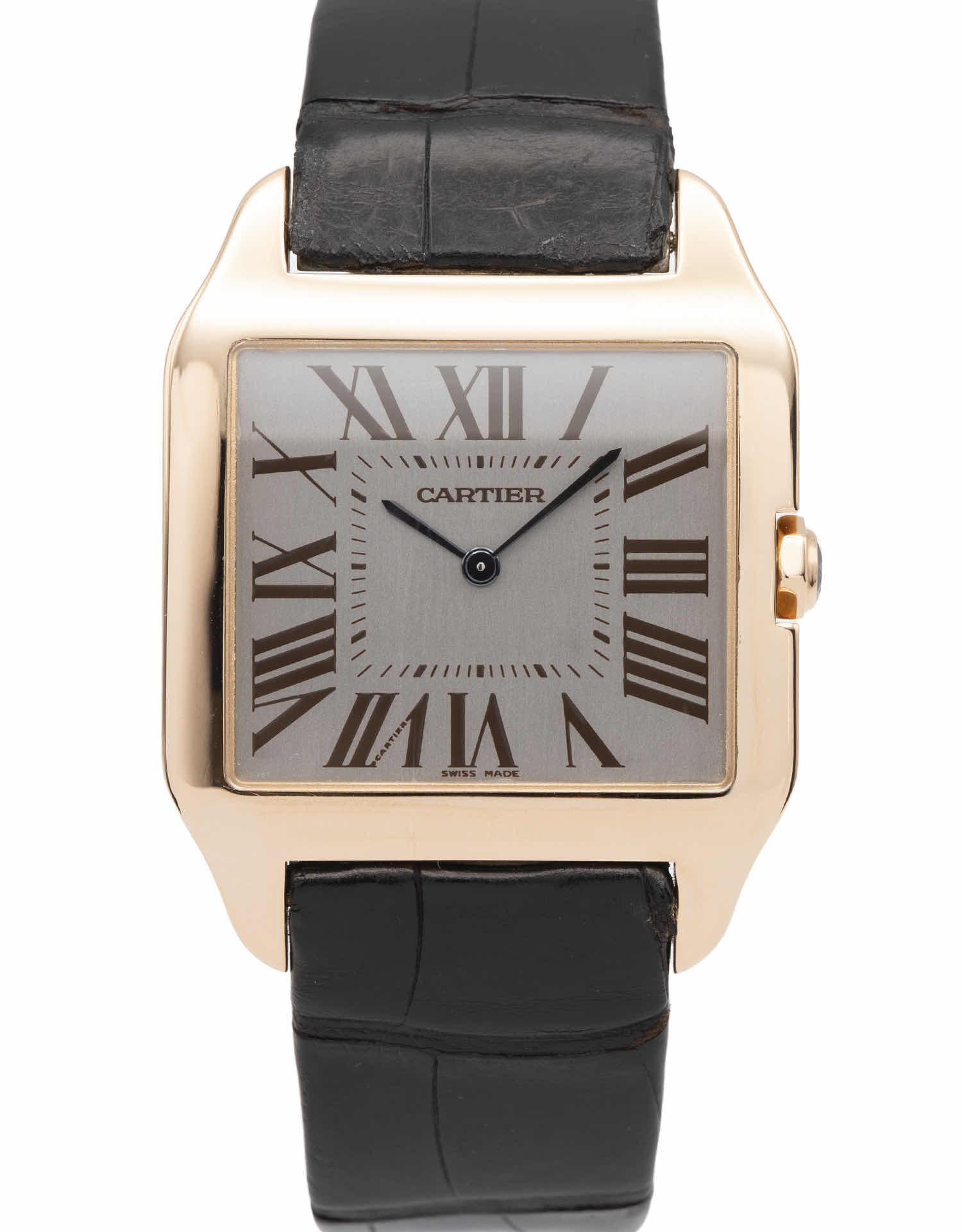 Discover the Cartier Santos Dumont (2010), where innovation meets timeless style. Crafted in rose gold, its silver dial adds flair and functionality. With a 35mm case, it effortlessly balances modern design and classic charm.