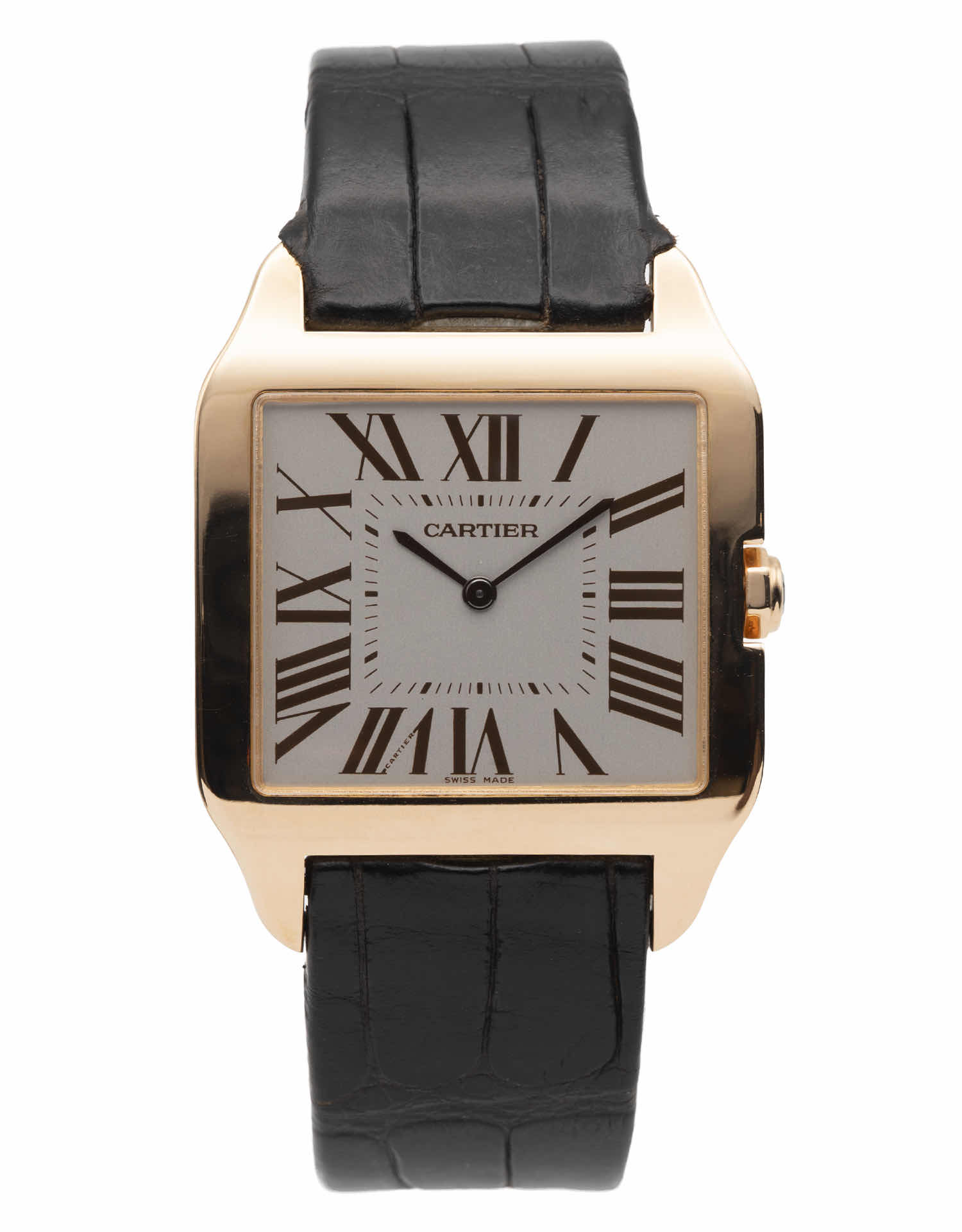 Discover the Cartier Santos Dumont (2019), where innovation meets timeless style. Crafted in rose gold, its silver dial adds flair and functionality. With a 35mm case, it effortlessly balances modern design and classic charm.