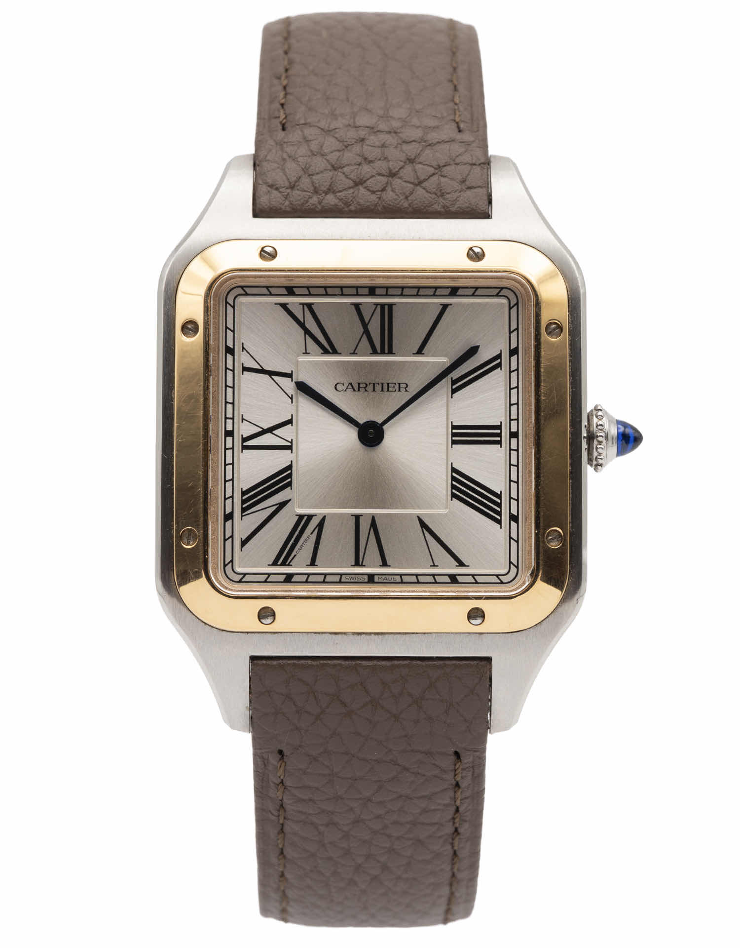Discover the Cartier Santos Dumont (2024), where innovation meets timeless style. Crafted in two tone rose gold, its silver dial adds flair and functionality. With a 34mm case, it effortlessly balances modern design and classic charm.
