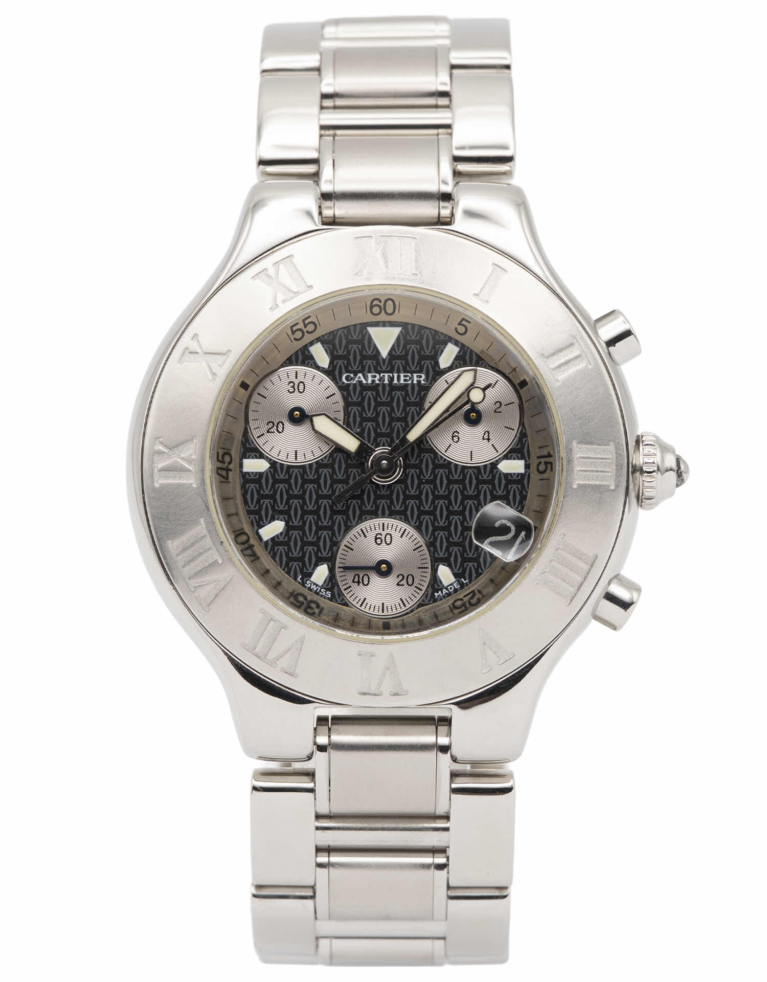 Discover the Cartier Sport 21, where innovation meets timeless style. Crafted in stainless steel, its black dial adds flair and functionality. With a 38.5mm case, it effortlessly balances modern design and classic charm.