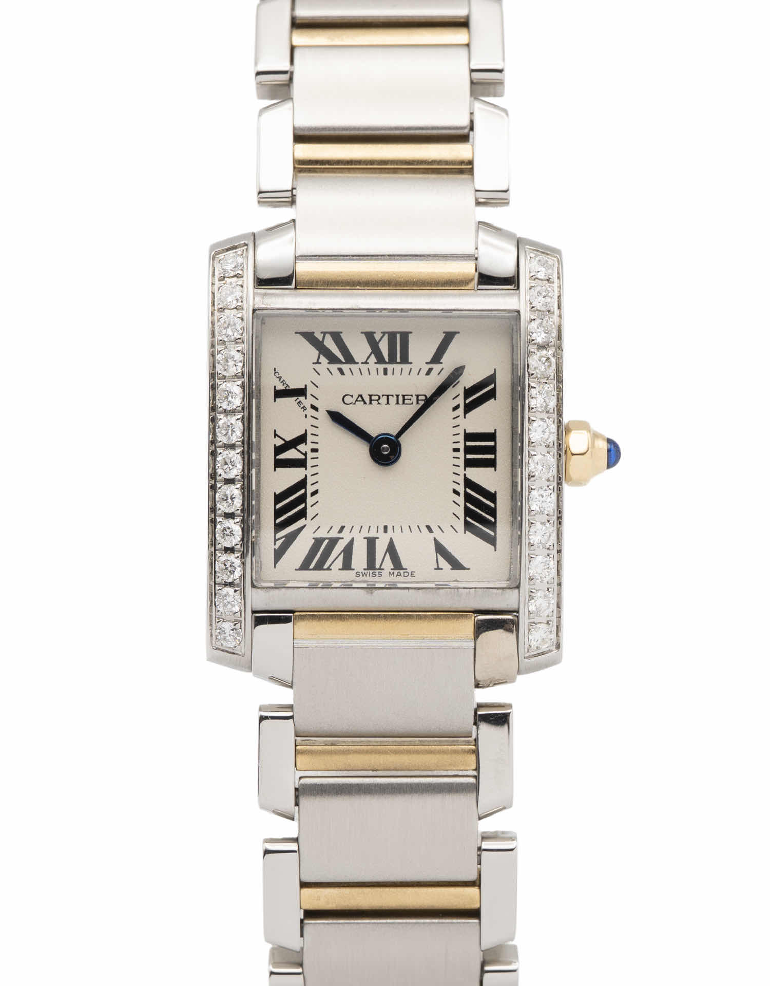Discover the Cartier Tank, where innovation meets timeless style. Crafted in two tone yellow gold, its ivory dial adds flair and functionality. With a perfectly sized case, it effortlessly balances modern design and classic charm.