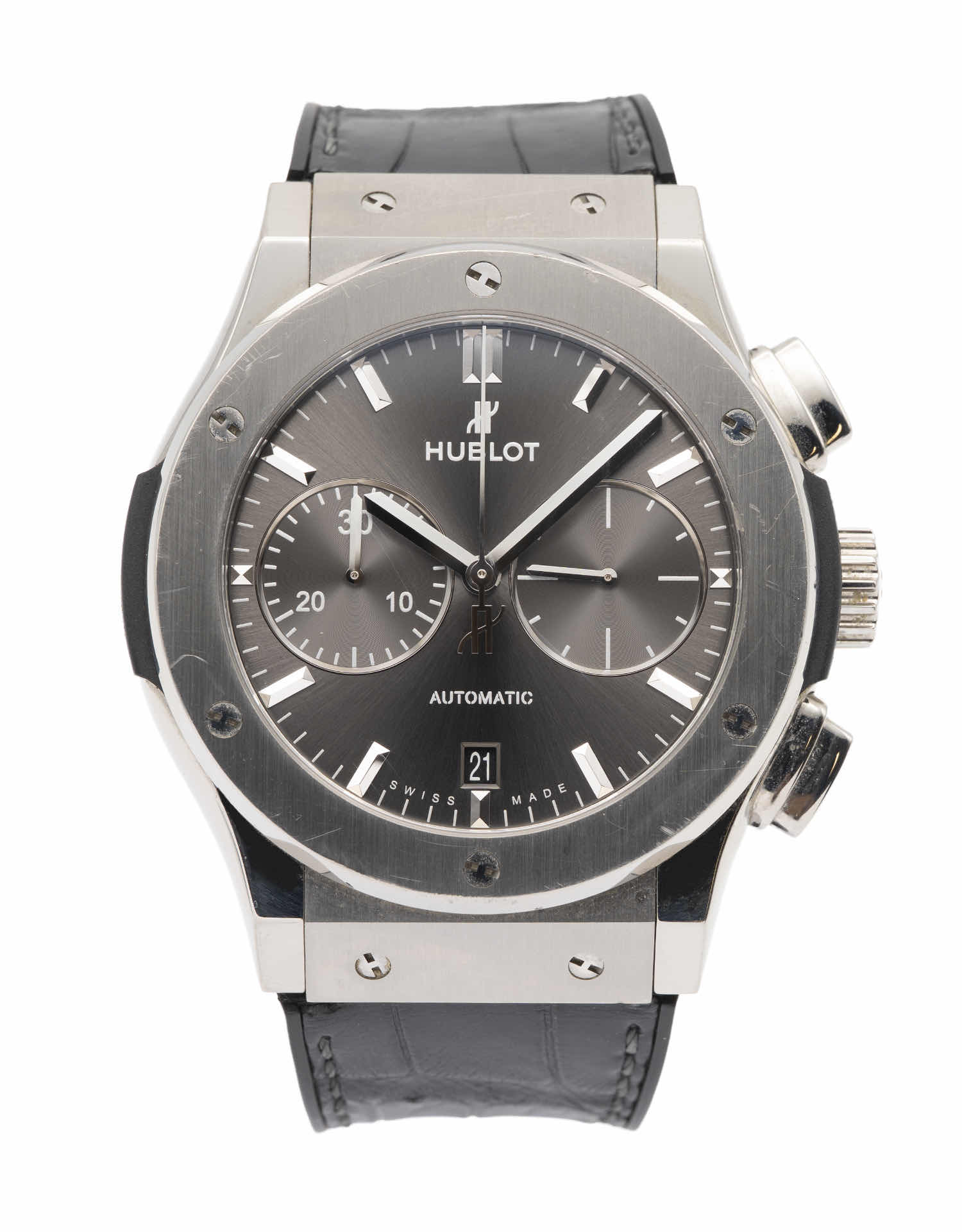 Discover the Hublot Classic Fusion (2019), where innovation meets timeless style. Crafted in titanium, its grey dial adds flair and functionality. With a 45mm case, it effortlessly balances modern design and classic charm.