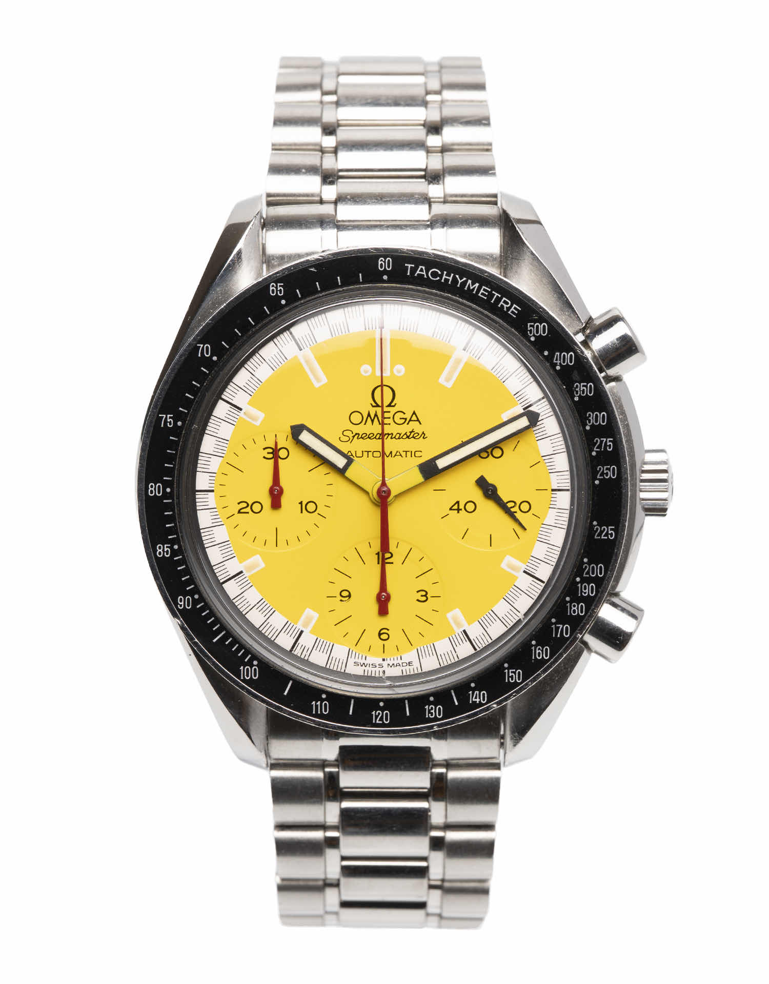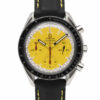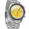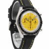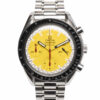 Discover the Omega Speedmaster, where innovation meets timeless style. Crafted in stainless steel, its yellow dial adds flair and functionality. With a 39mm case, it effortlessly balances modern design and classic charm.