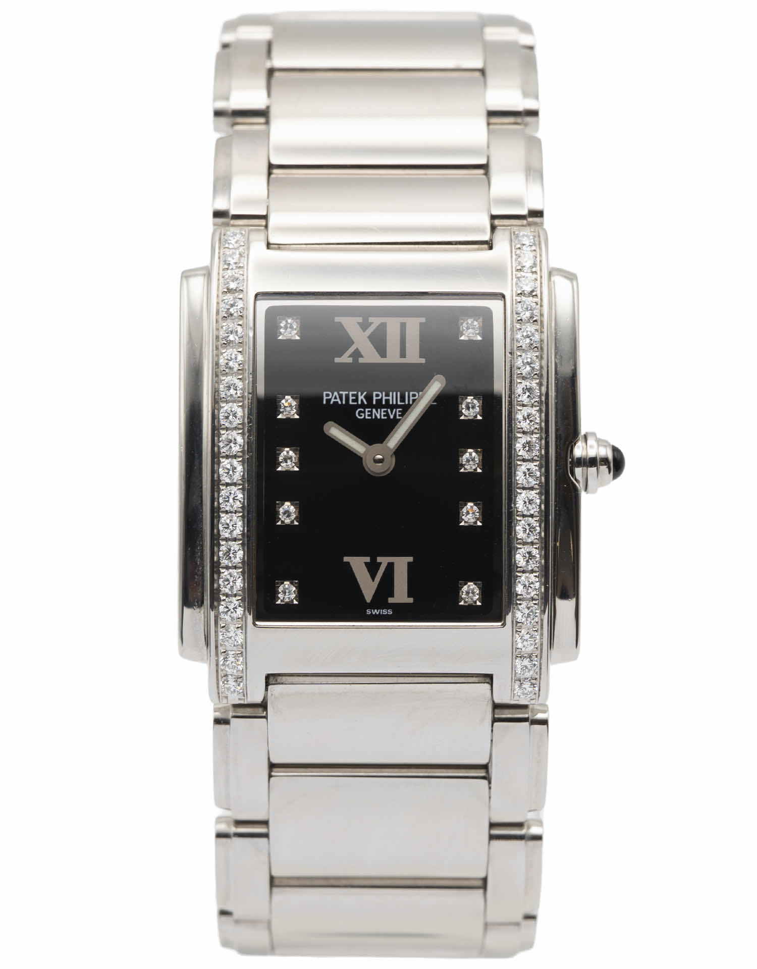 Discover the Patek Philippe Twenty-4 (2008), where innovation meets timeless style. Crafted in stainless steel, its black dial adds flair and functionality. With a 24mm case, it effortlessly balances modern design and classic charm.