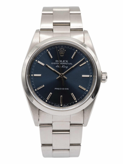 Discover the Rolex Air-King (2019), where innovation meets timeless style. Crafted in stainless steel, its blue dial adds flair and functionality. With a 34mm case, it effortlessly balances modern design and classic charm.