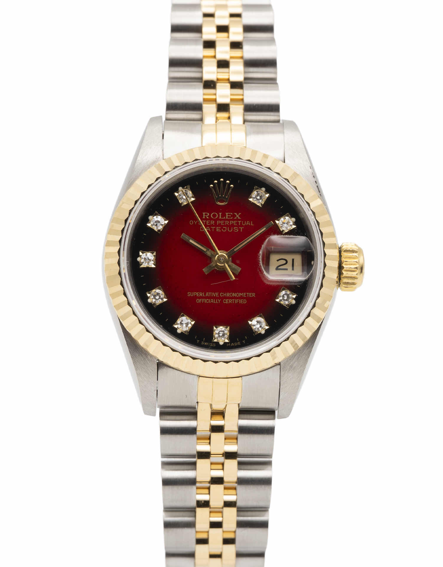 Discover the Rolex Datejust 26 (1988), where innovation meets timeless style. Crafted in two tone yellow gold, its red dial adds flair and functionality. With a 26mm case, it effortlessly balances modern design and classic charm.
