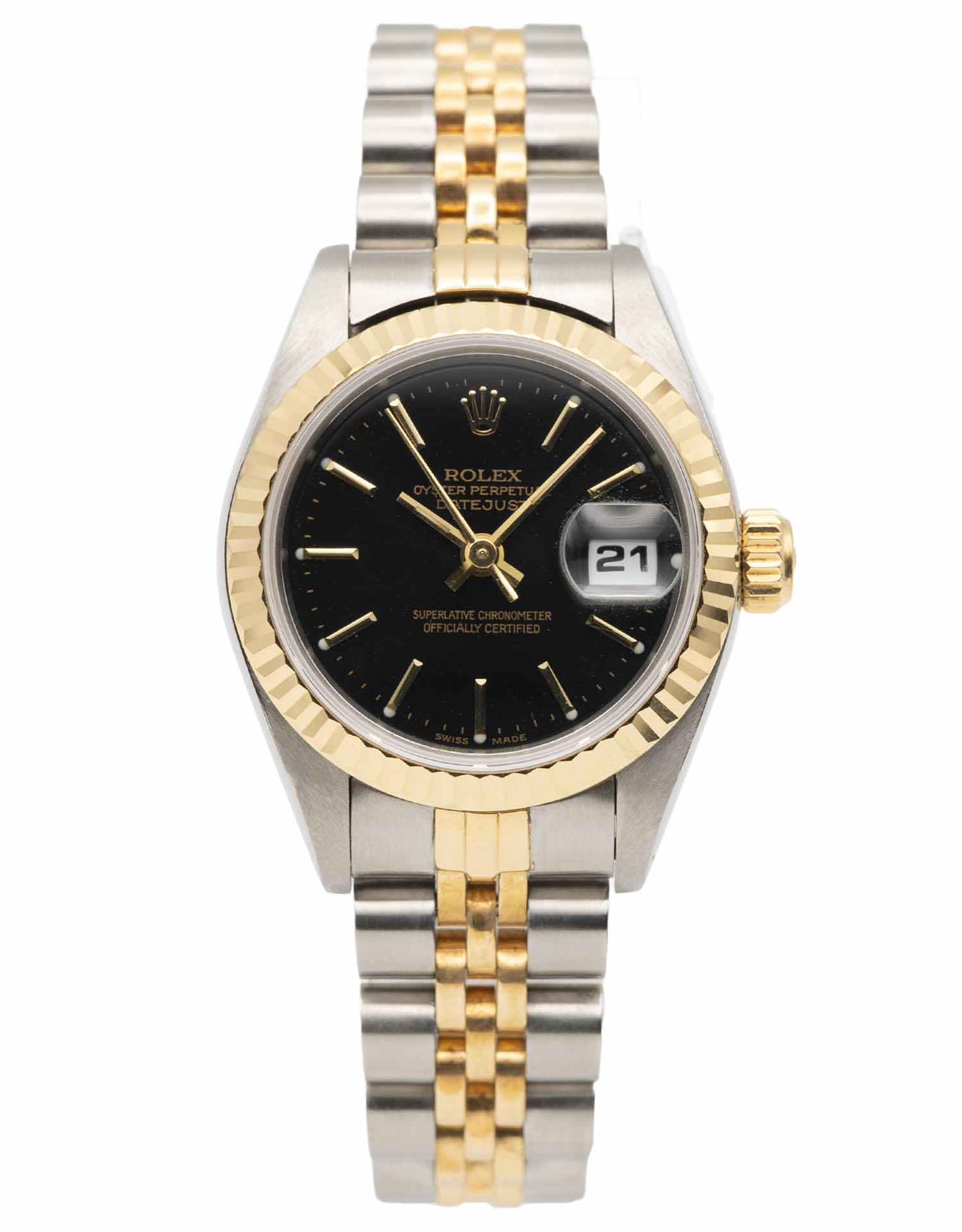 Discover the Rolex Datejust 26 (1991), where innovation meets timeless style. Crafted in two tone yellow gold, its black dial adds flair and functionality. With a 26mm case, it effortlessly balances modern design and classic charm.