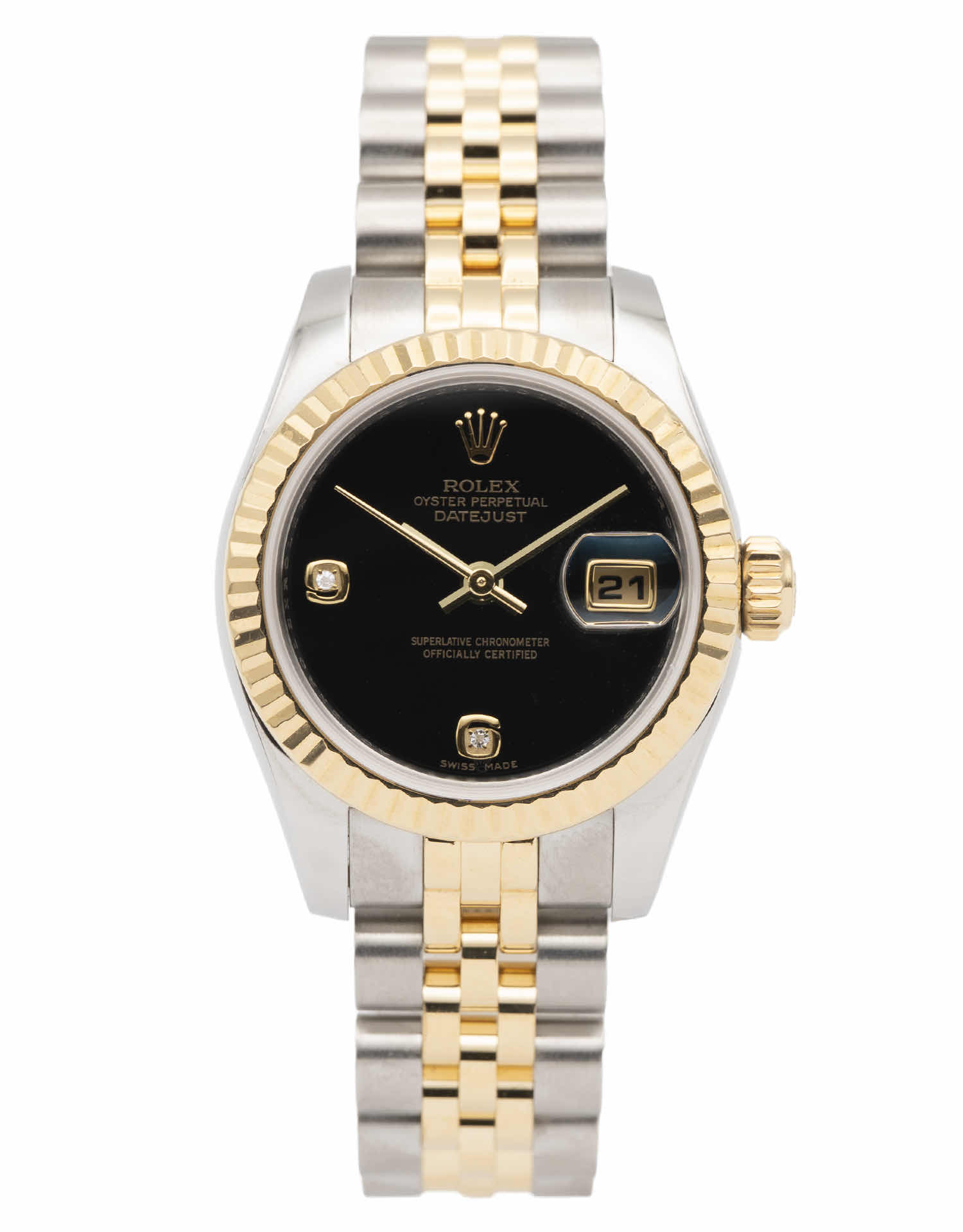 Discover the Rolex Datejust 26 (2014), where innovation meets timeless style. Crafted in two tone yellow gold, its black dial adds flair and functionality. With a 26Mm case, it effortlessly balances modern design and classic charm.
