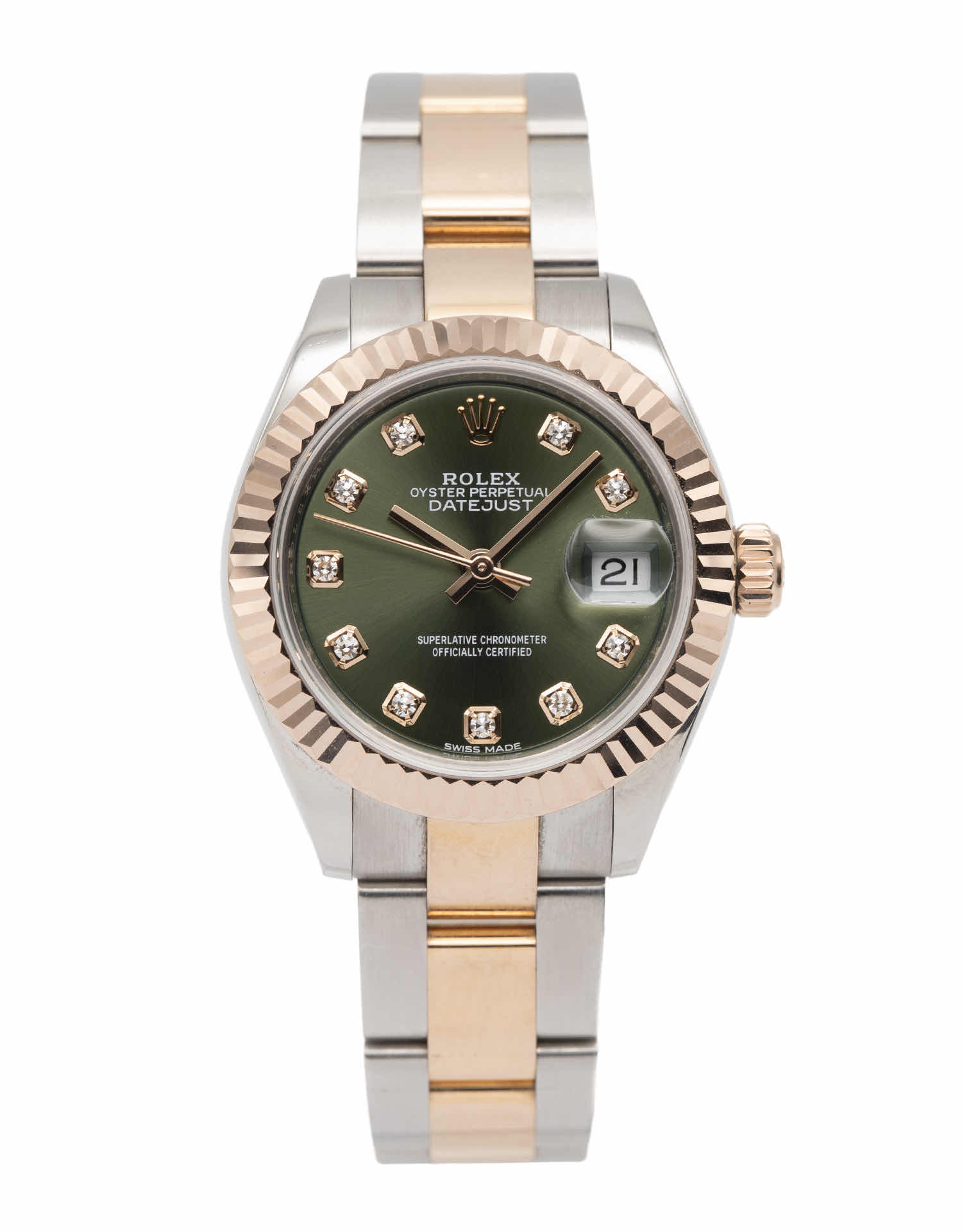 Discover the Rolex Datejust 28 (2019), where innovation meets timeless style. Crafted in two tone rose gold, its olive green dial adds flair and functionality. With a 28mm case, it effortlessly balances modern design and classic charm.