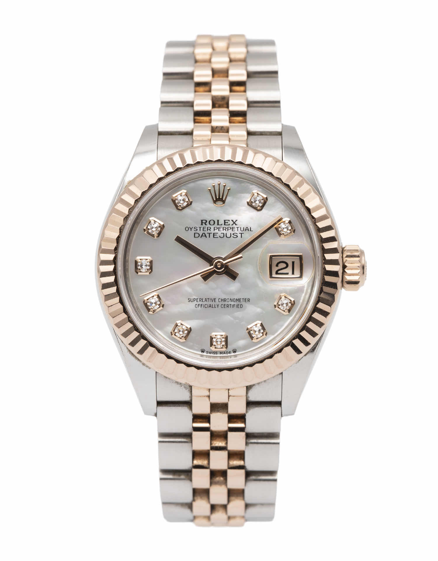 Discover the Rolex Datejust 28 (2021), where innovation meets timeless style. Crafted in two tone rose gold, its mother of pearl dial adds flair and functionality. With a 28mm case, it effortlessly balances modern design and classic charm.