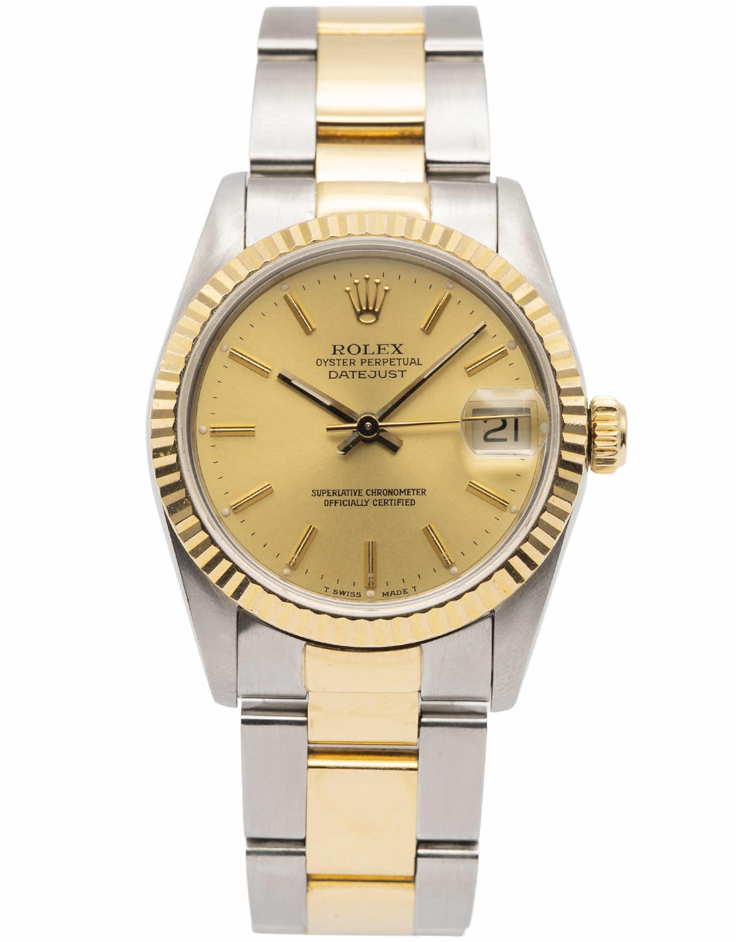 Discover the Rolex Datejust 31 (1988), where innovation meets timeless style. Crafted in two tone yellow gold, its champagne dial adds flair and functionality. With a 31mm case, it effortlessly balances modern design and classic charm.
