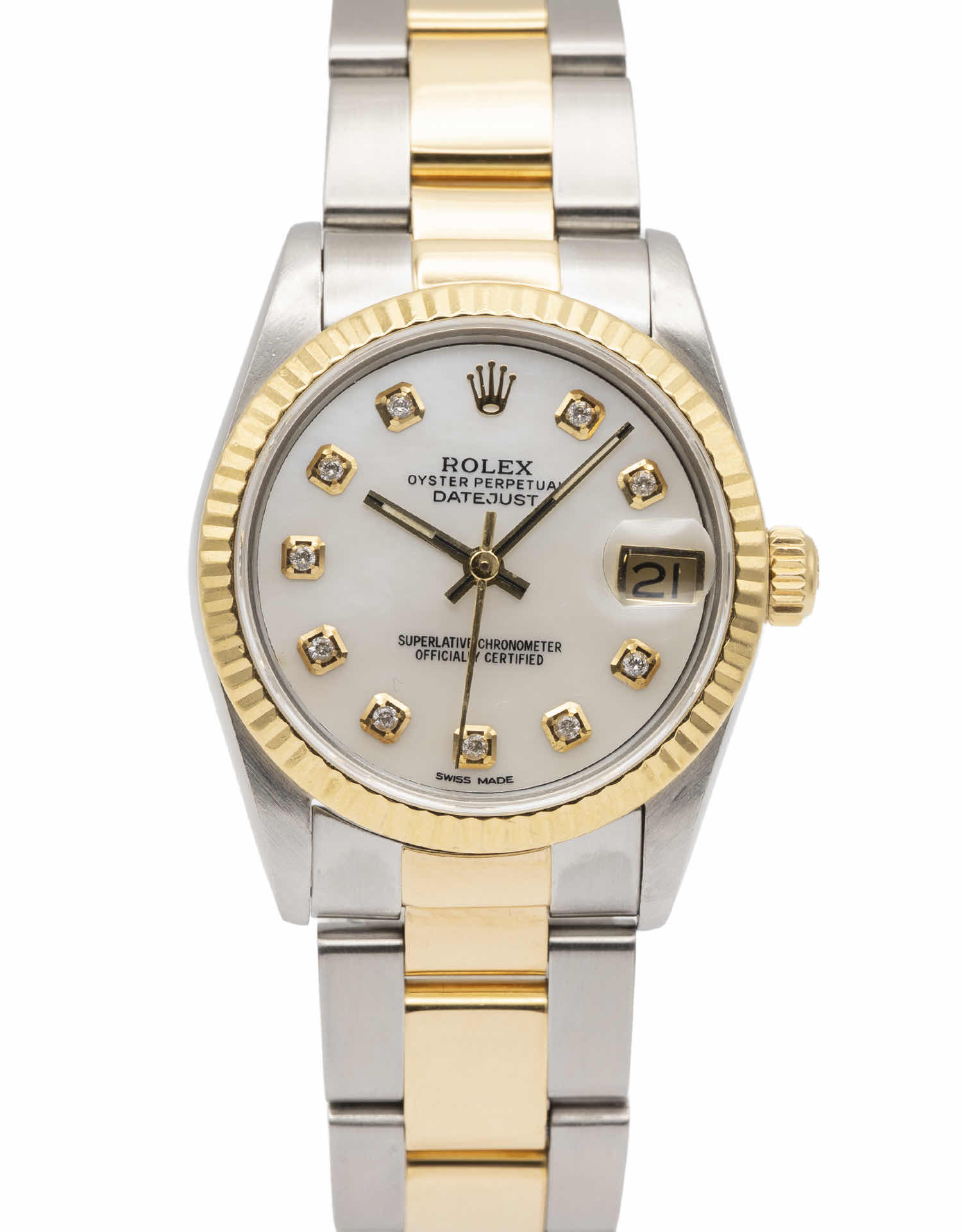 Discover the Rolex Datejust 31 (1990), where innovation meets timeless style. Crafted in two tone yellow gold, its mother of pearl dial adds flair and functionality. With a 31mm case, it effortlessly balances modern design and classic charm.