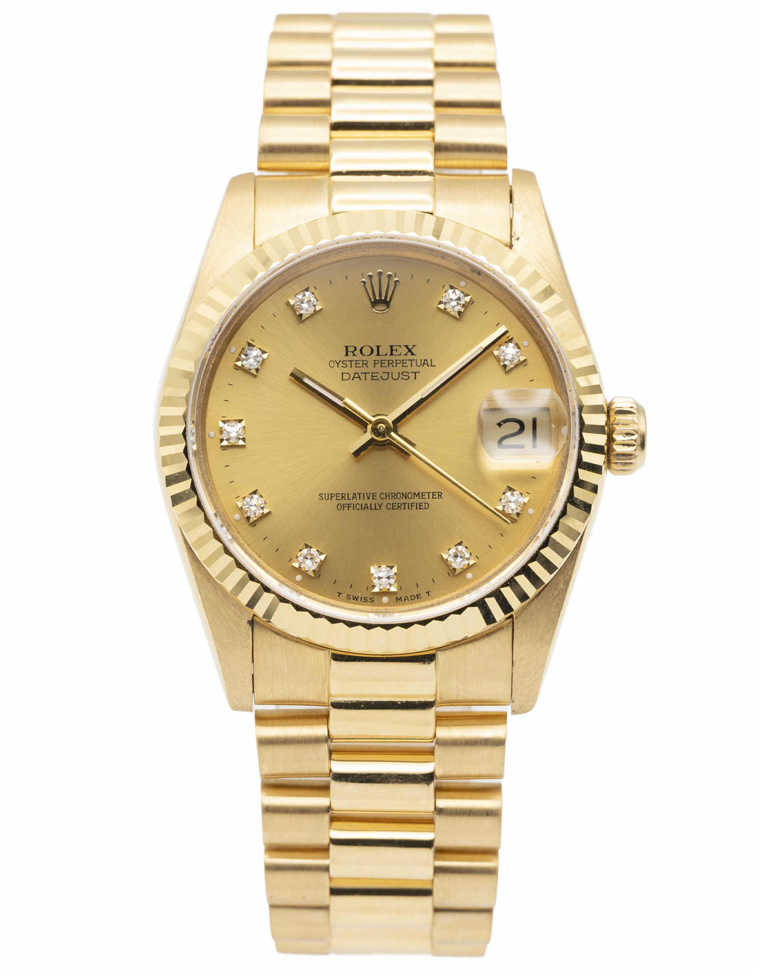 Discover the Rolex Datejust 31 (1992), where innovation meets timeless style. Crafted in yellow gold, its champagne dial adds flair and functionality. With a 31mm case, it effortlessly balances modern design and classic charm.
