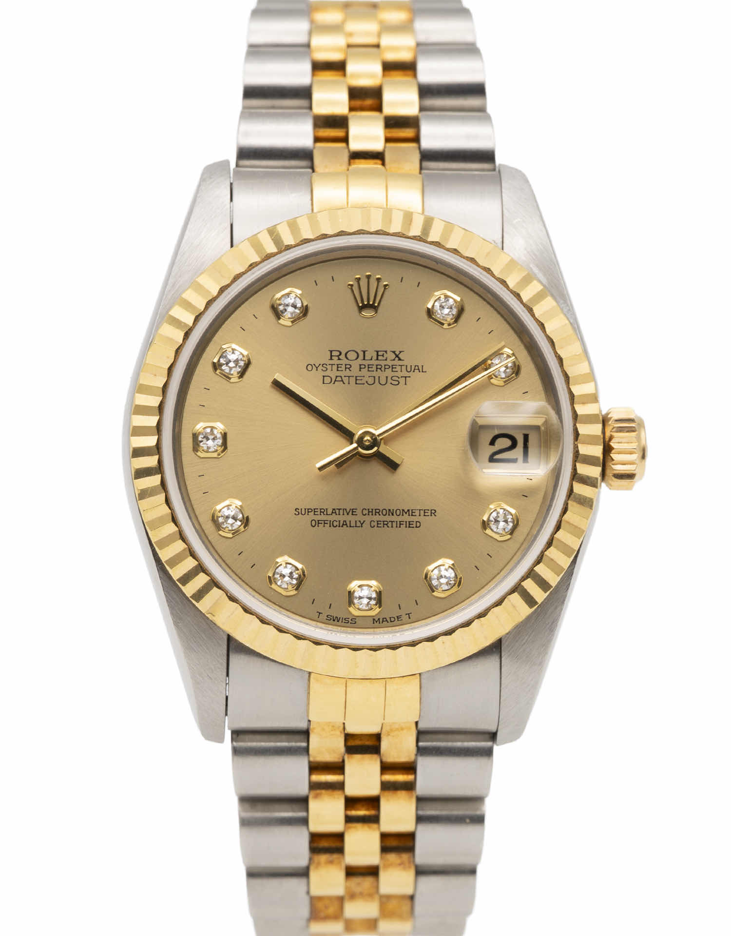 Discover the Rolex Datejust 31 (1997), where innovation meets timeless style. Crafted in two tone yellow gold, its champagne dial adds flair and functionality. With a 31mm case, it effortlessly balances modern design and classic charm.