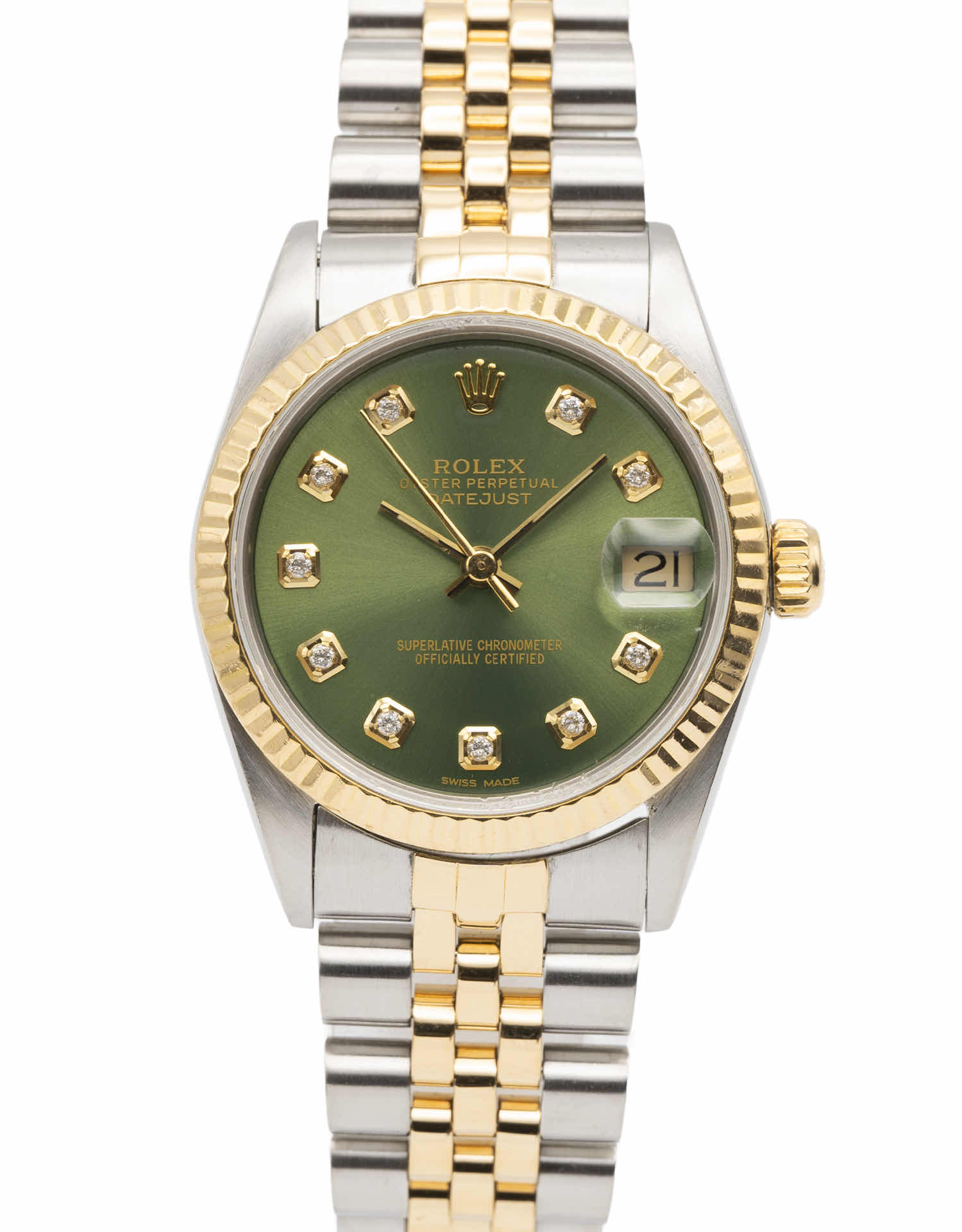 Discover the Rolex Datejust 31 (1998), where innovation meets timeless style. Crafted in two tone yellow gold, its custom not made by manufacturer dial adds flair and functionality. With a 31Mm case, it effortlessly balances modern design and classic charm.