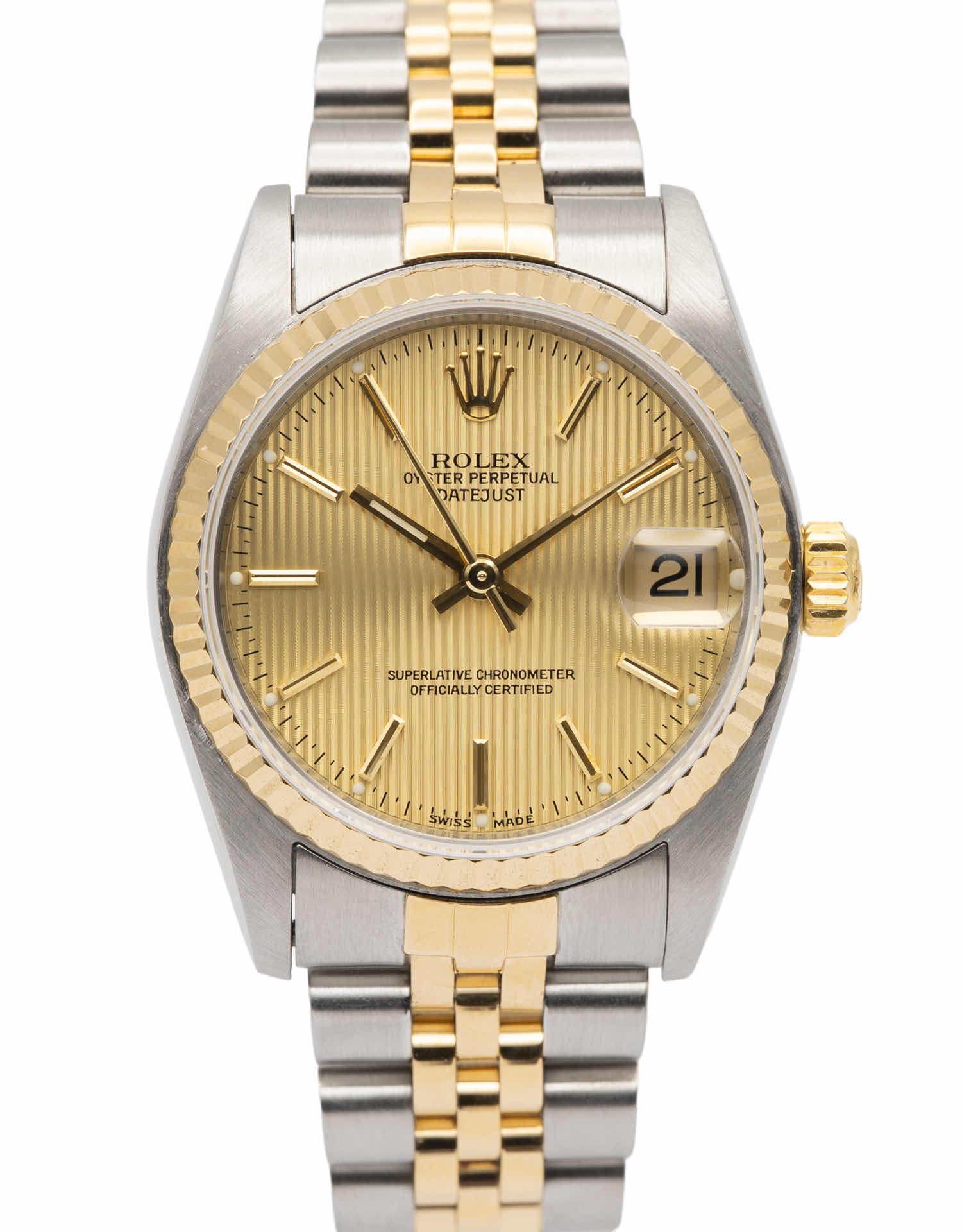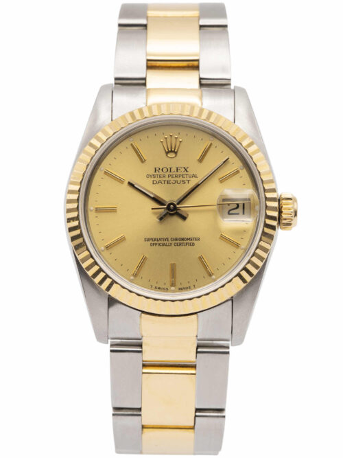 Discover the Rolex Datejust 31 (2005), where innovation meets timeless style. Crafted in two tone yellow gold, its champagne dial adds flair and functionality. With a 31mm case, it effortlessly balances modern design and classic charm.