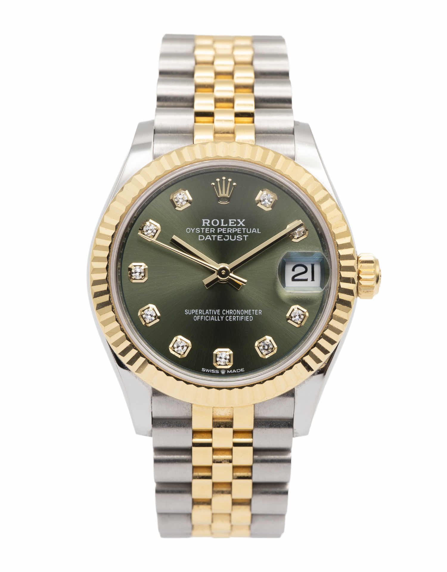 Discover the Rolex Datejust 31 (2020), where innovation meets timeless style. Crafted in two tone yellow gold, its green dial adds flair and functionality. With a 31mm case, it effortlessly balances modern design and classic charm.
