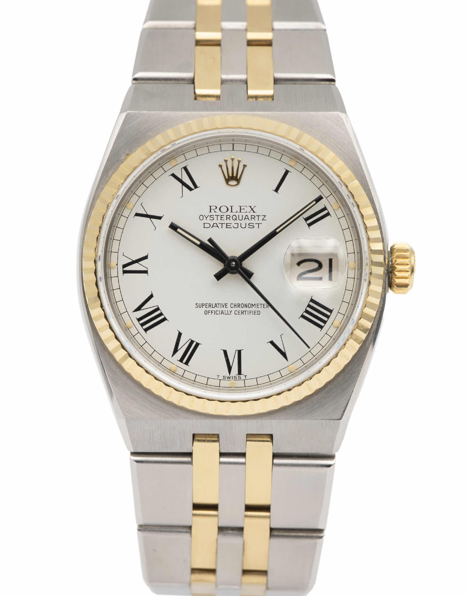 Discover the Rolex Datejust 36 (1985), where innovation meets timeless style. Crafted in two tone yellow gold, its white dial adds flair and functionality. With a 36Mm case, it effortlessly balances modern design and classic charm.