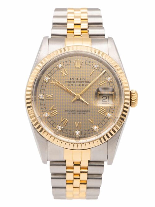 Discover the Rolex Datejust 36 (1989), where innovation meets timeless style. Crafted in two tone yellow gold, its champagne dial adds flair and functionality. With a 36Mm case, it effortlessly balances modern design and classic charm.