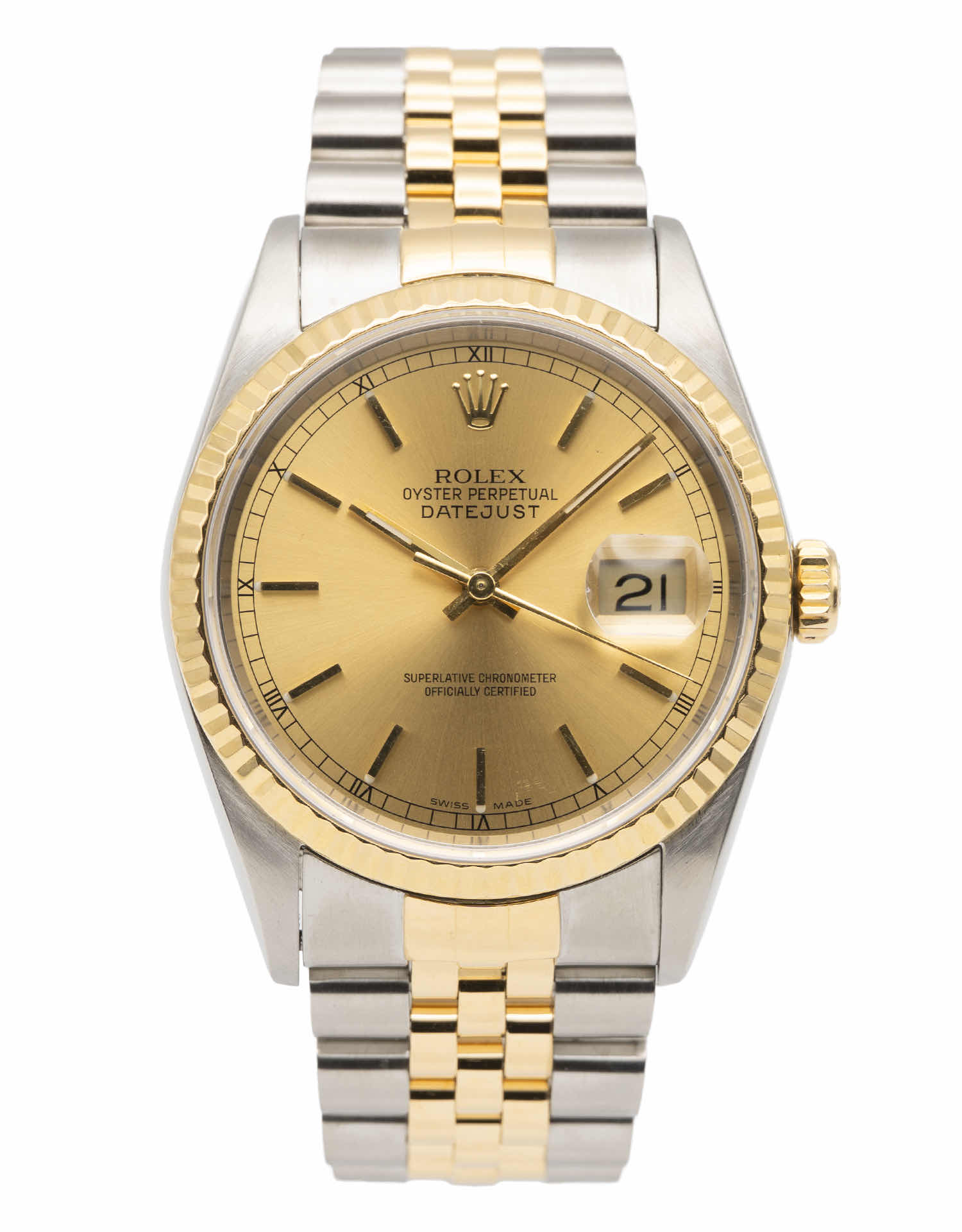 Discover the Rolex Datejust 36 (1991), where innovation meets timeless style. Crafted in two tone yellow gold, its champagne dial adds flair and functionality. With a 36mm case, it effortlessly balances modern design and classic charm.