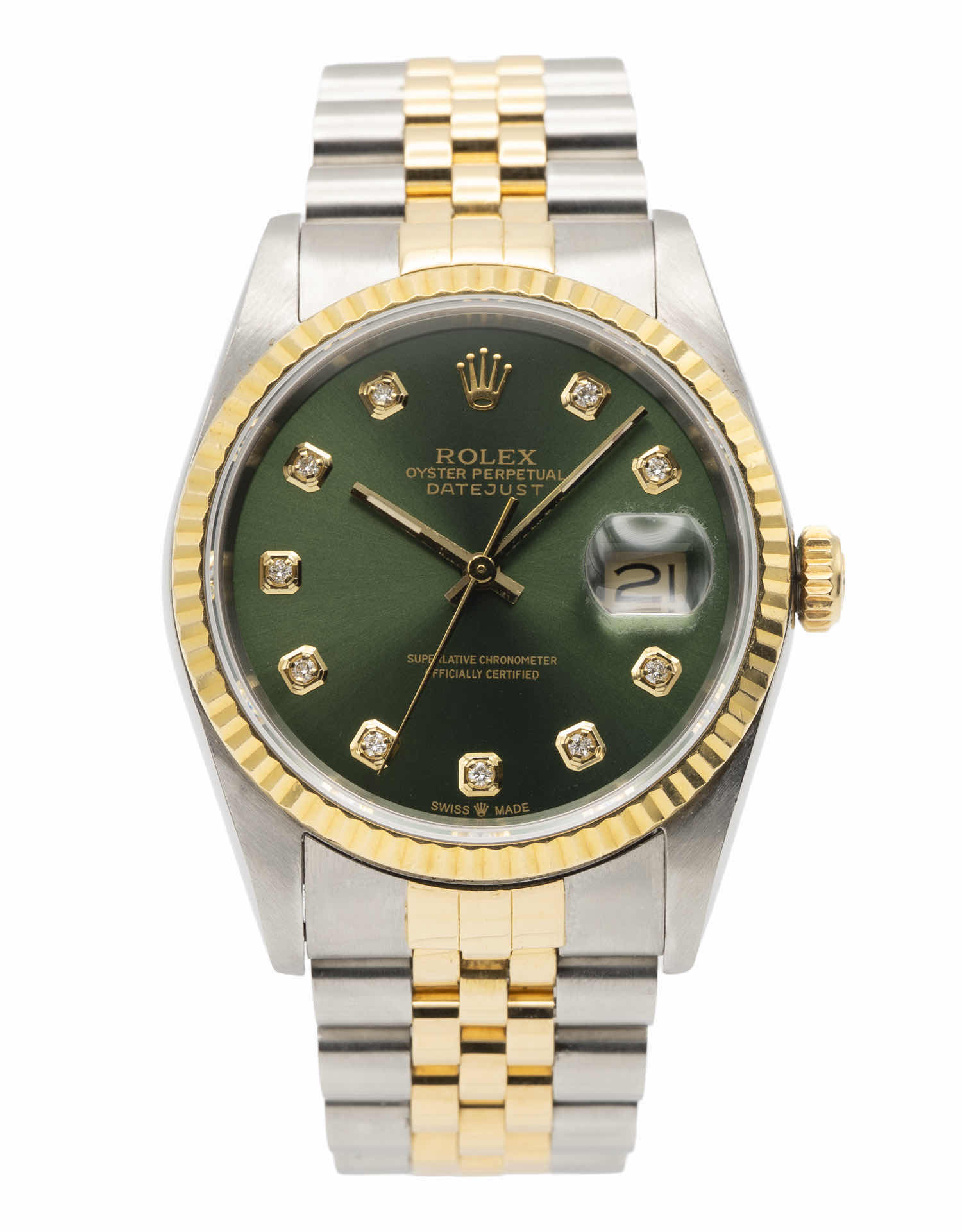 Discover the Rolex Datejust 36 (1993), where innovation meets timeless style. Crafted in two tone yellow gold, its custom not made by manufacturer dial adds flair and functionality. With a 36mm case, it effortlessly balances modern design and classic charm.