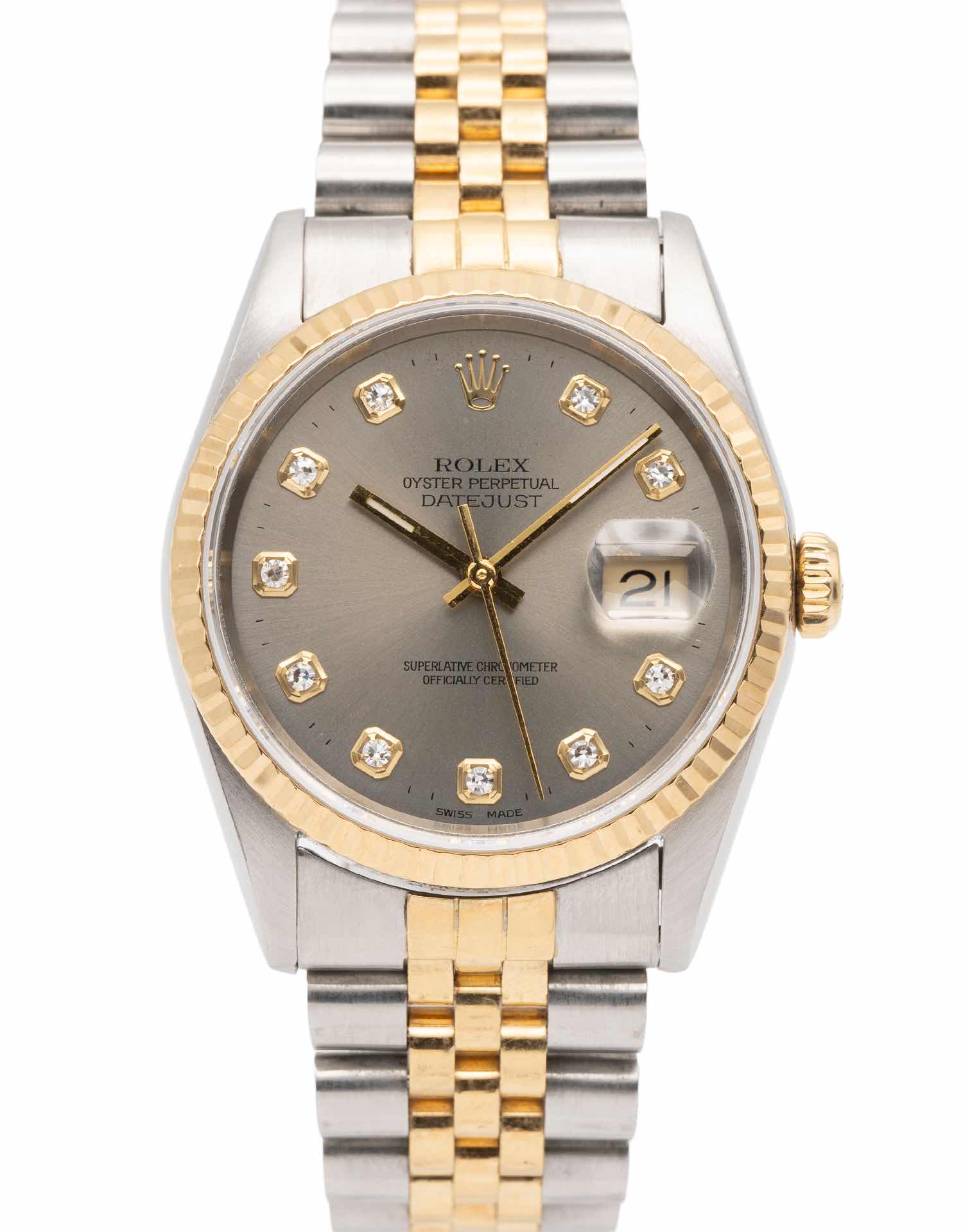 Discover the Rolex Datejust 36 (1994), where innovation meets timeless style. Crafted in two tone yellow gold, its grey dial adds flair and functionality. With a 36mm case, it effortlessly balances modern design and classic charm.