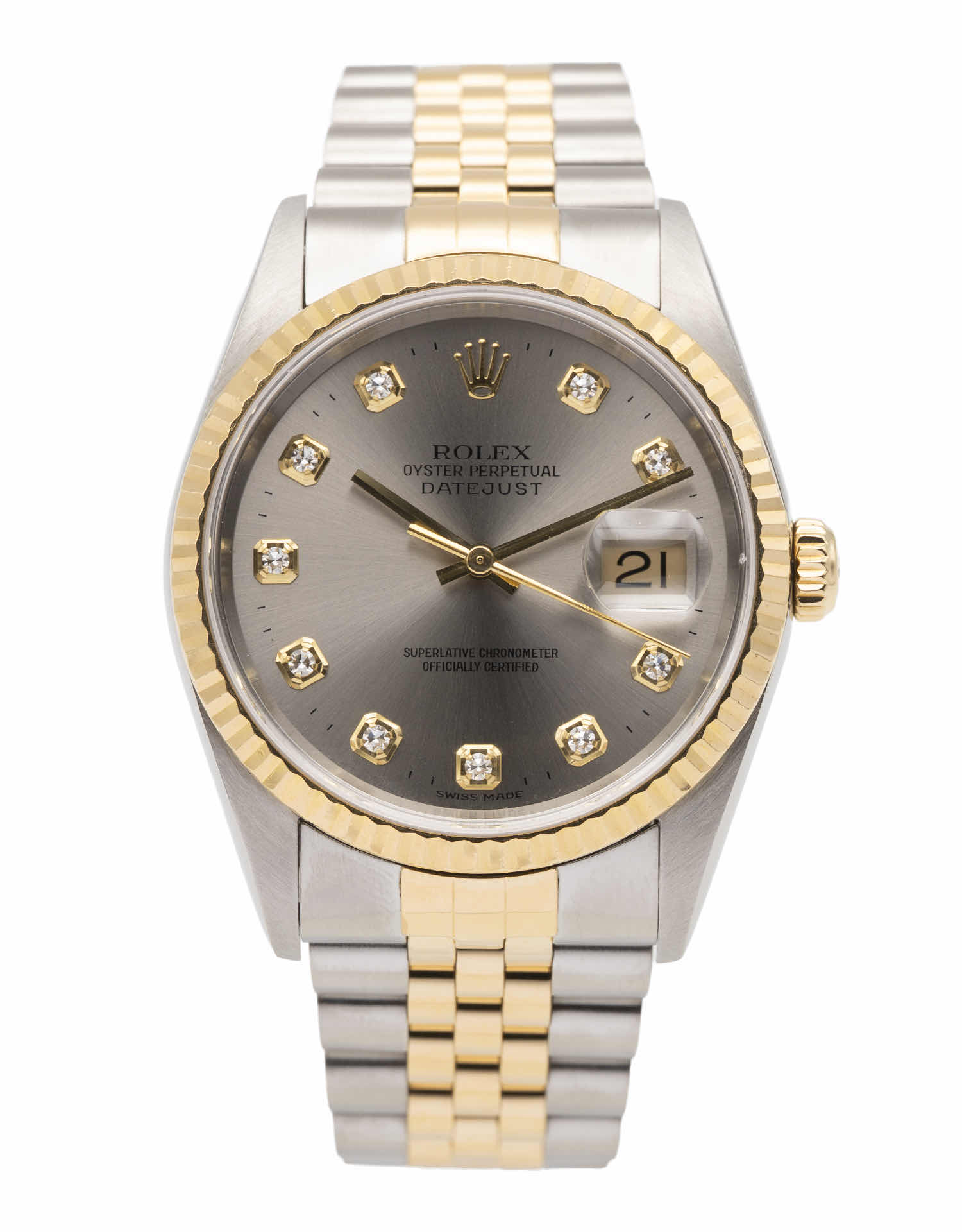 Discover the Rolex Datejust 36 (1995), where innovation meets timeless style. Crafted in two tone yellow gold, its grey dial adds flair and functionality. With a 36mm case, it effortlessly balances modern design and classic charm.