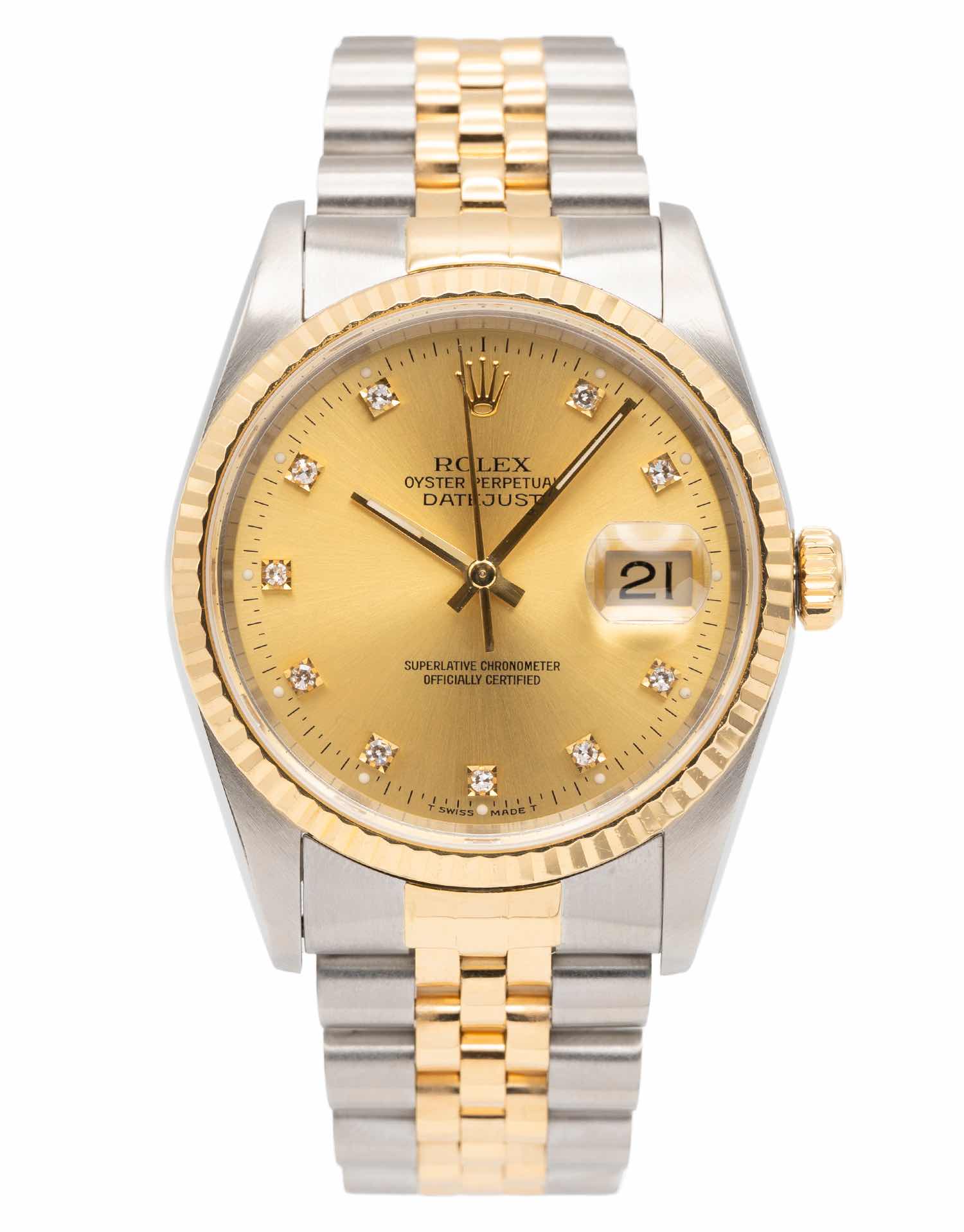 Discover the Rolex Datejust 36 (1995), where innovation meets timeless style. Crafted in two tone yellow gold, its champagne dial adds flair and functionality. With a 36mm case, it effortlessly balances modern design and classic charm.